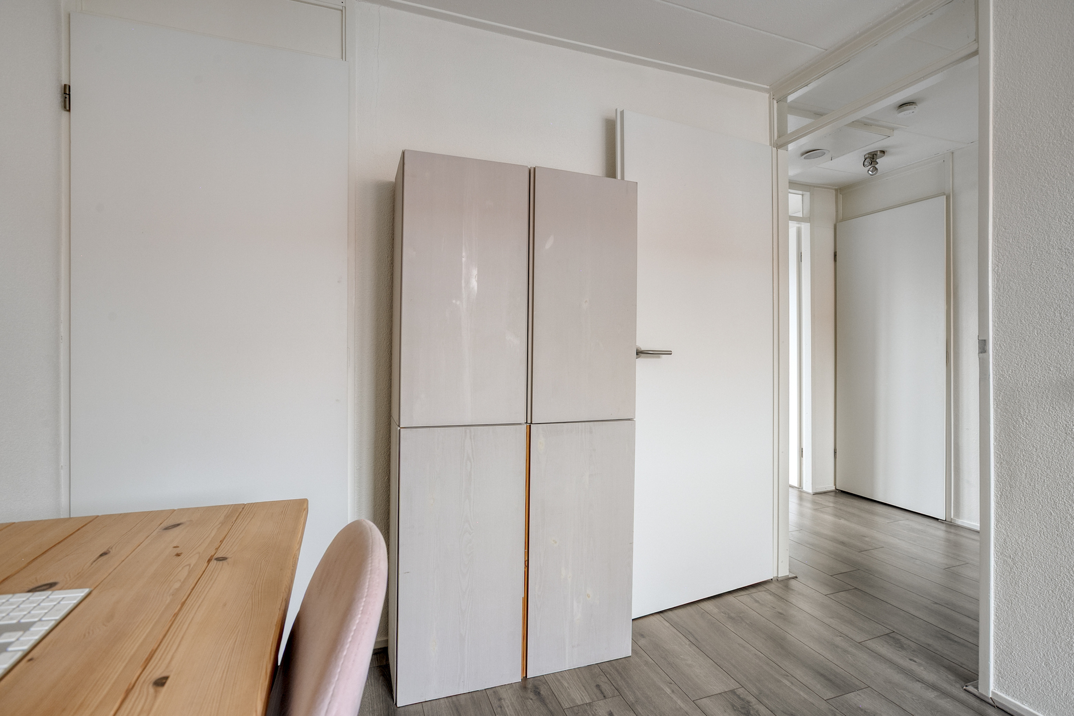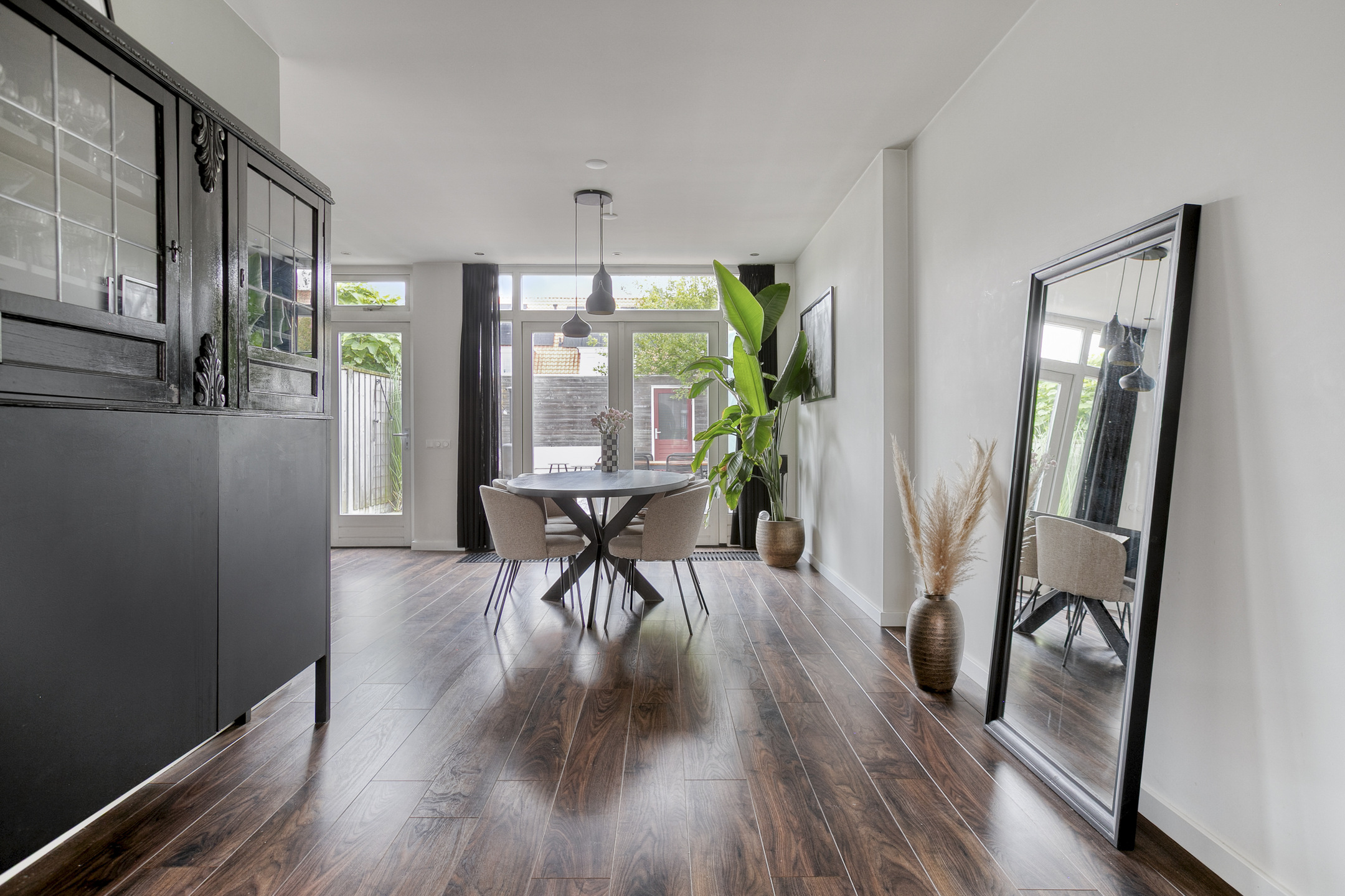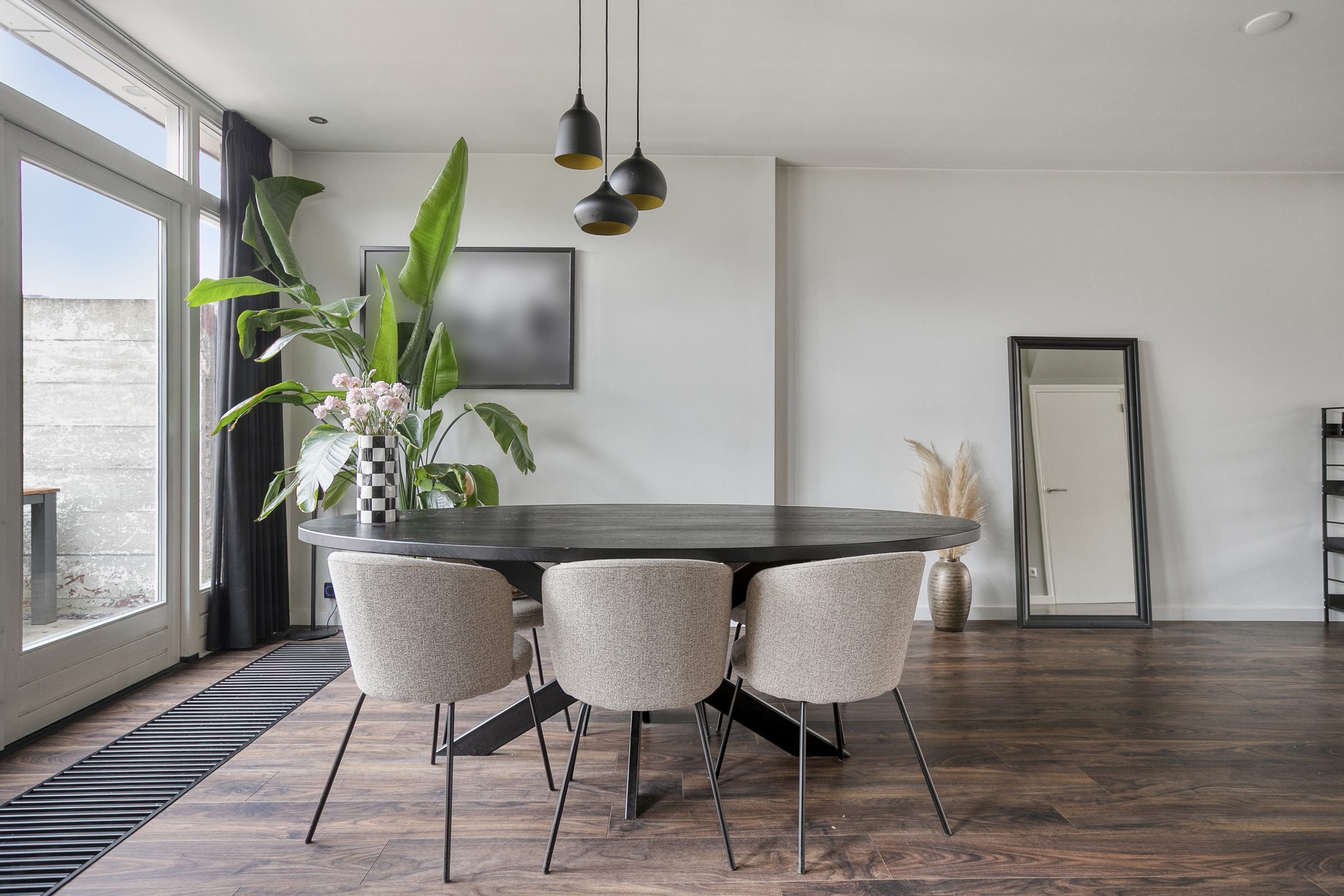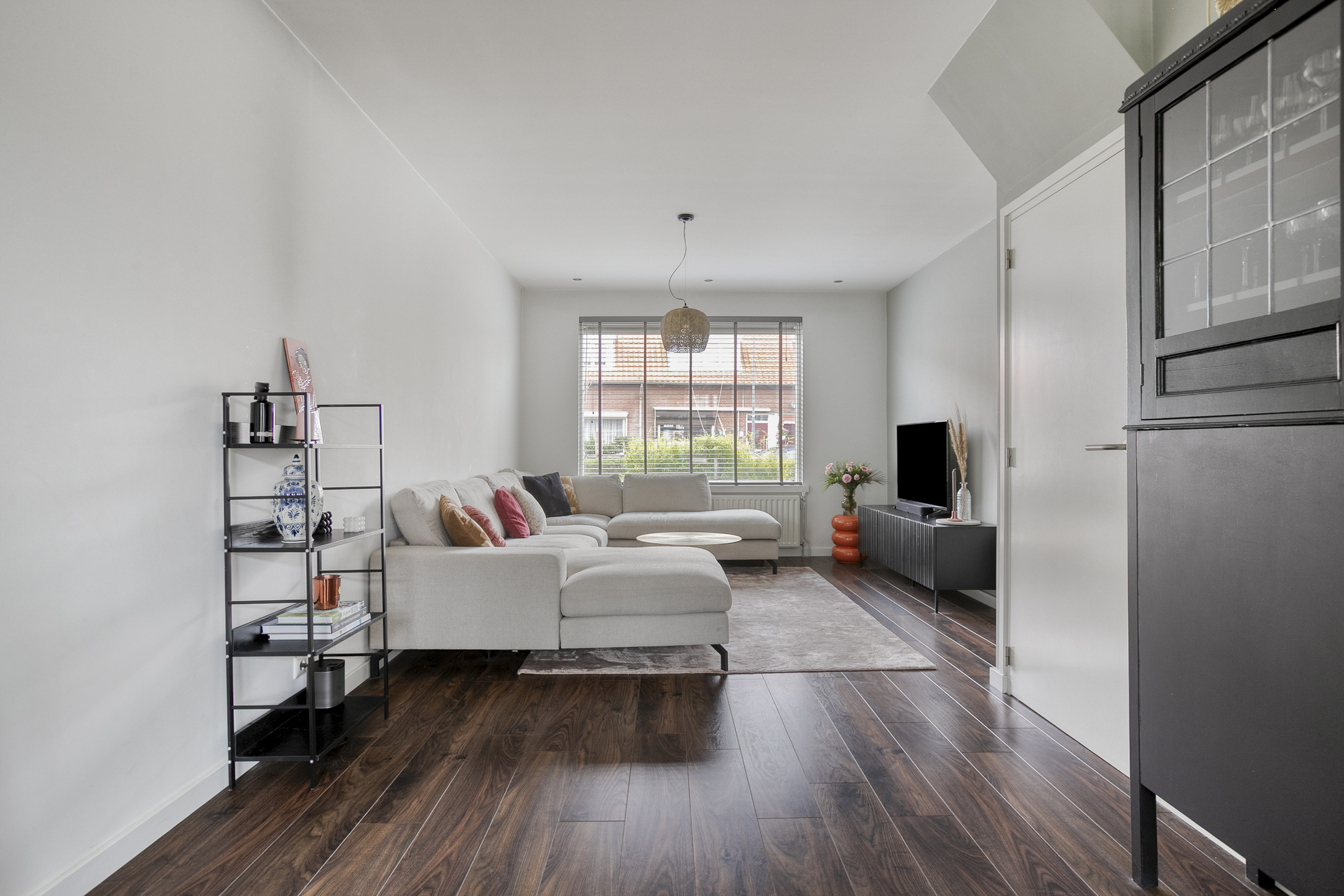 – de lichte woonkamer is uitgebouwd en voelt meteen ruim en gezellig aan. Strak gestucte wanden, een nette laminaatvloer en veel daglicht zorgen voor een fijne sfeer;