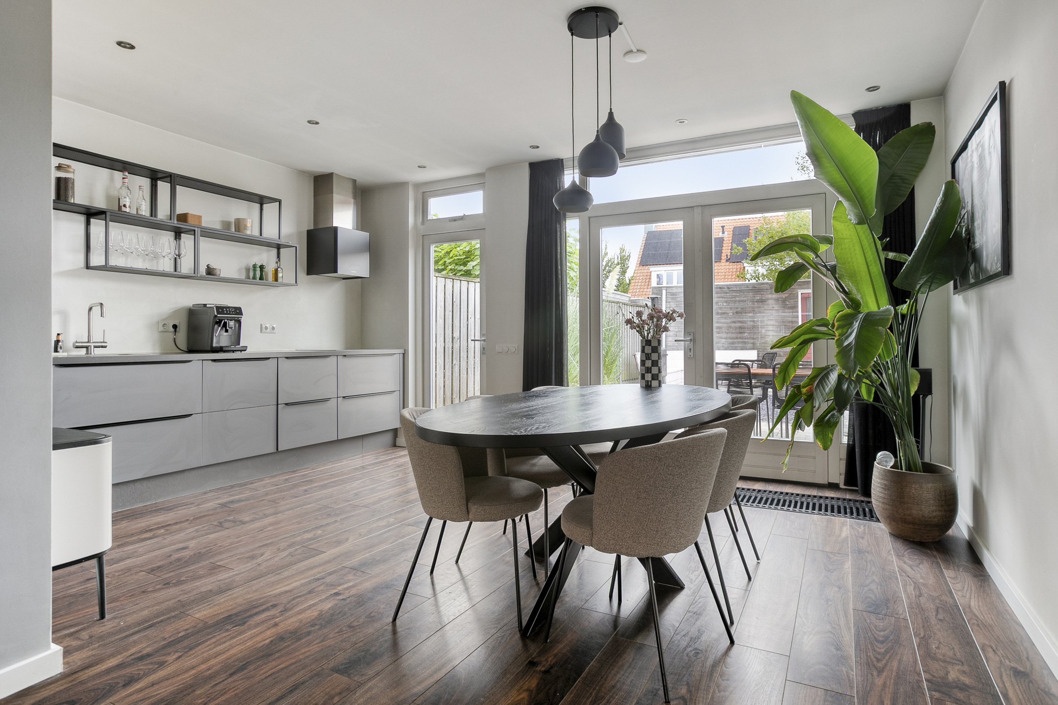 – Aan de tuinkant is plek voor een royale eettafel – met de openslaande deuren open haal je buiten lekker naar binnen.