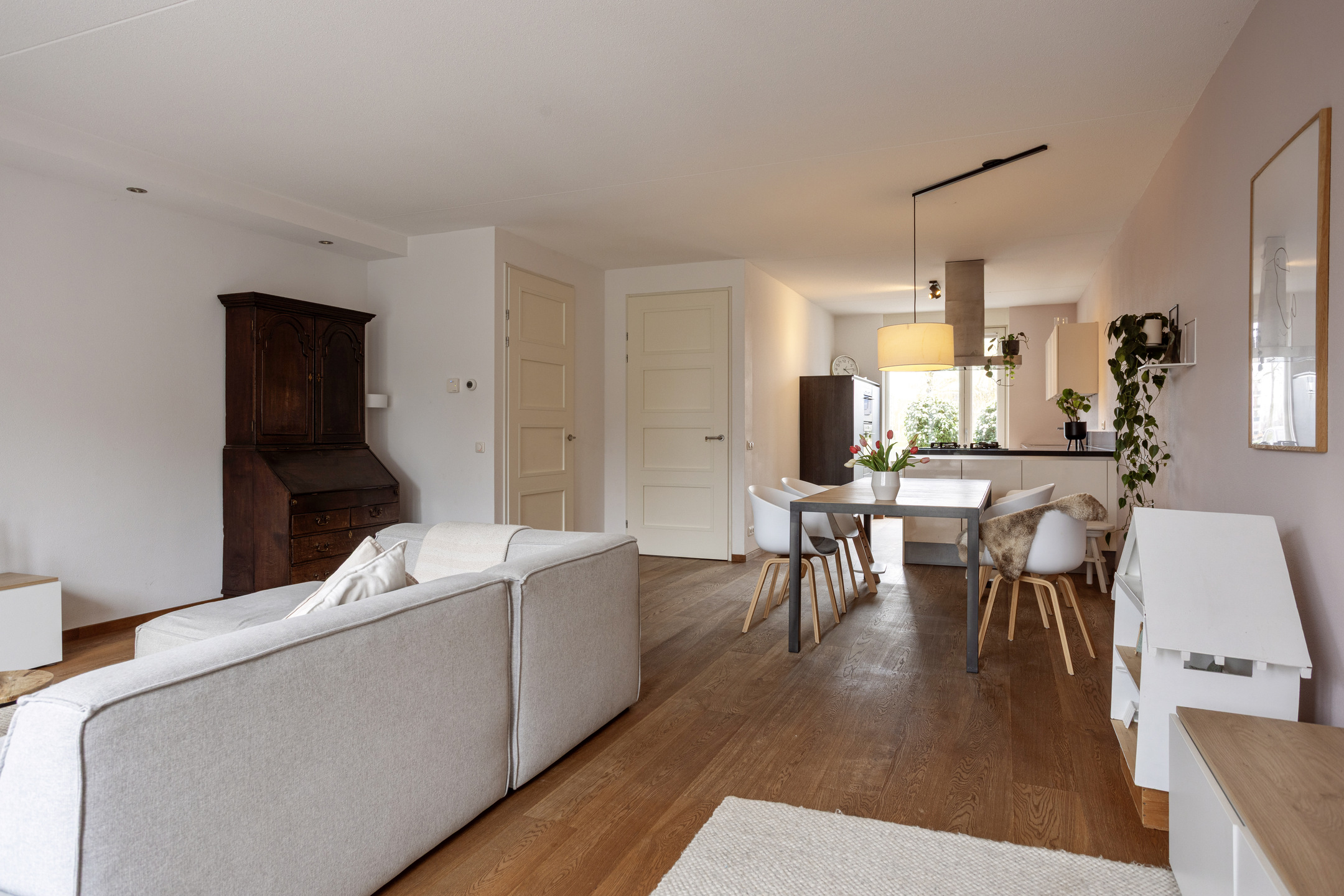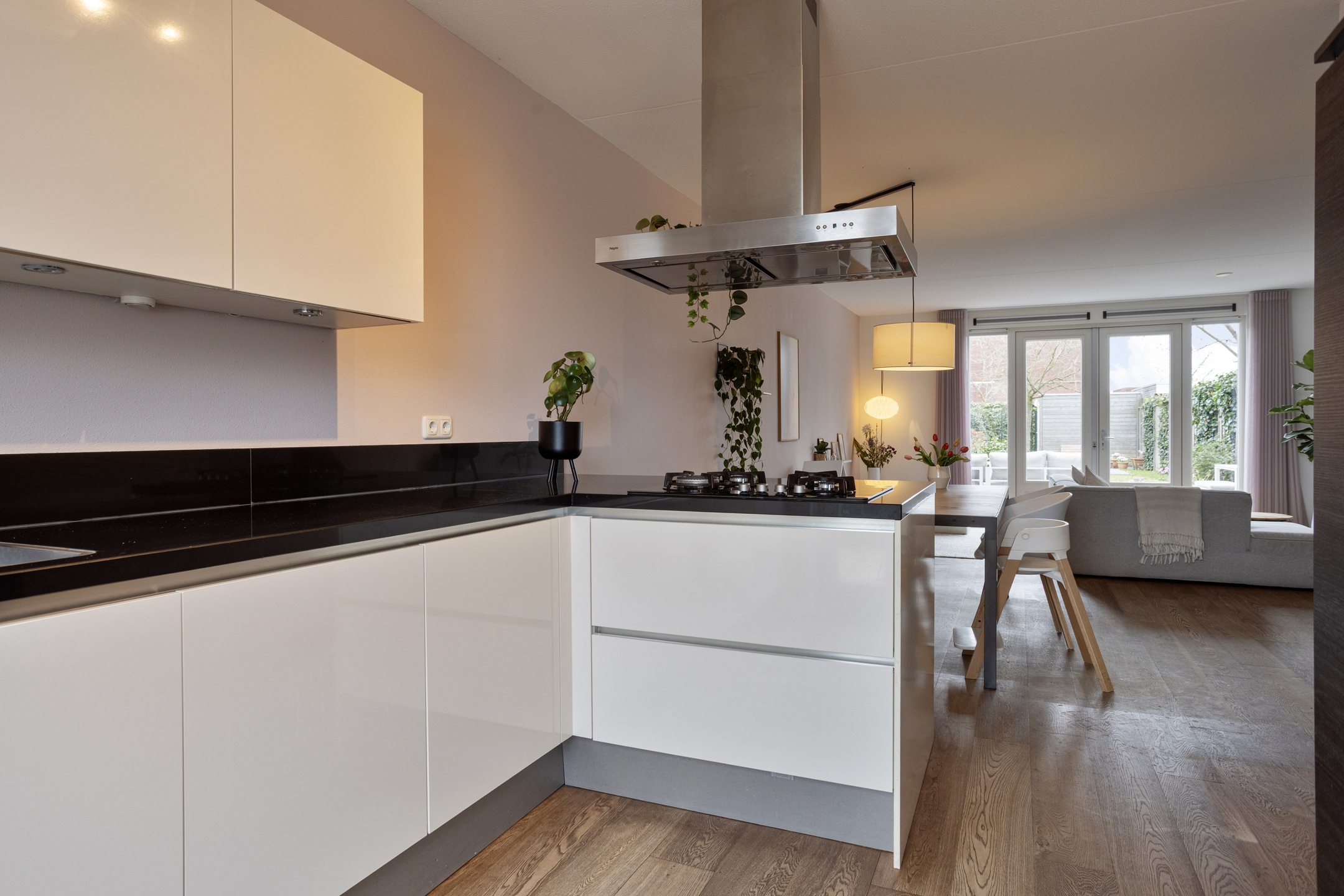 – De woning is aan de achterzijde royaal uitgebouwd, waardoor een heerlijke leefruimte is ontstaan. De dubbele deuren zorgen voor een prachtige, directe verbinding met de achtertuin, binnen en buiten lopen hier moeiteloos in elkaar over;