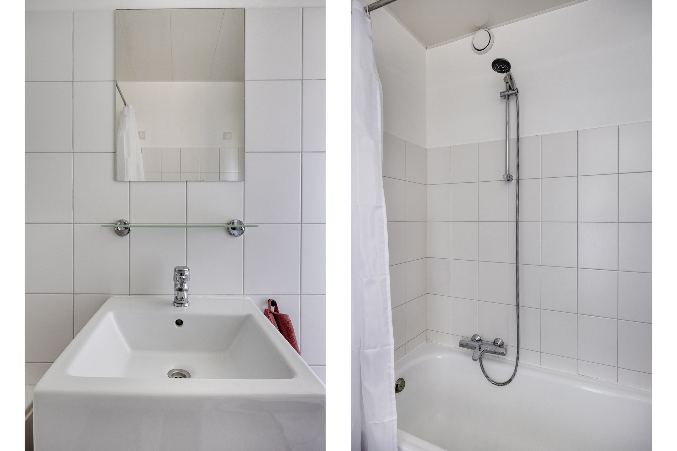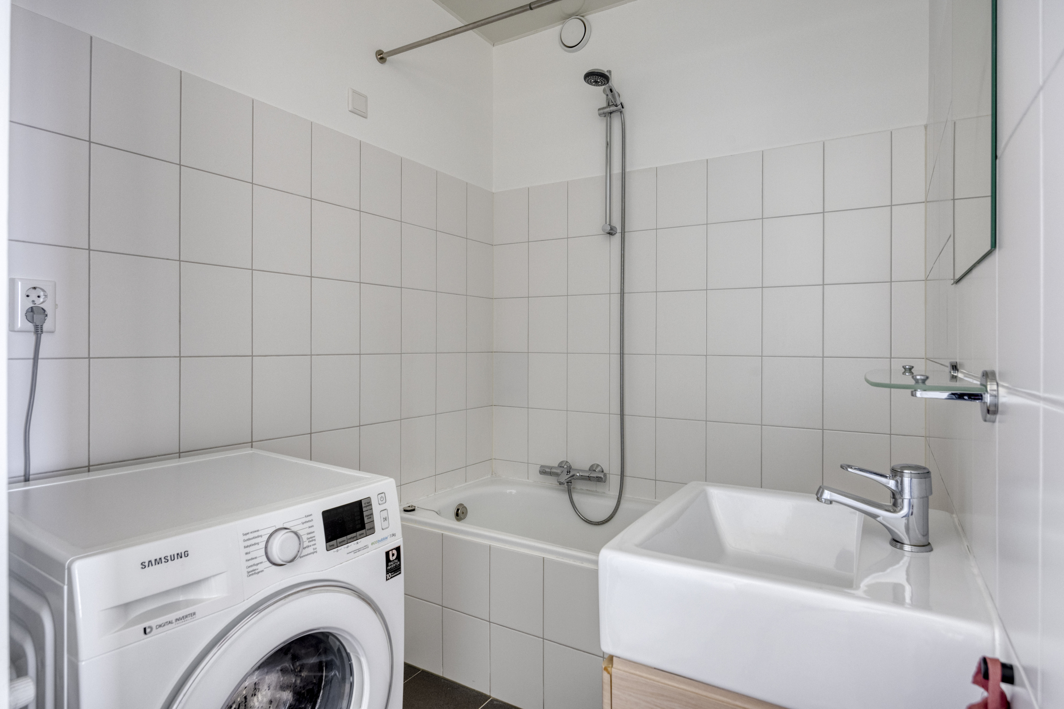 – de grotendeels betegelde badkamer is voorzien van een ligbad met douche, wastafel met meubel en de wasmachineaansluiting;