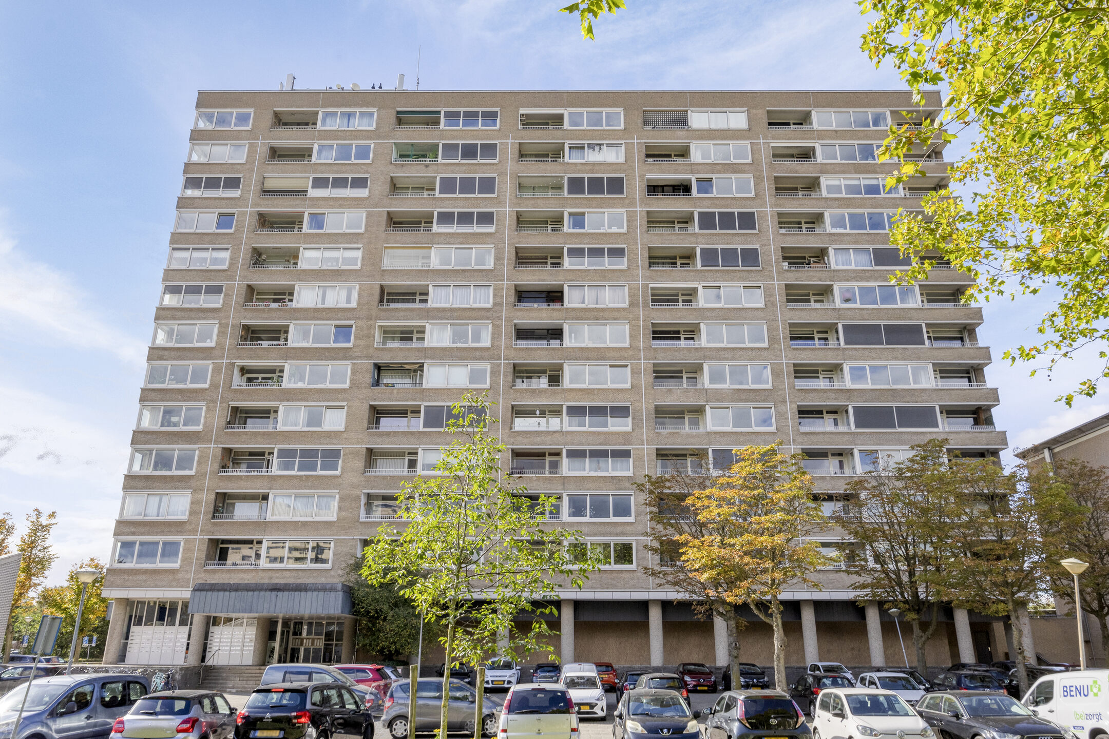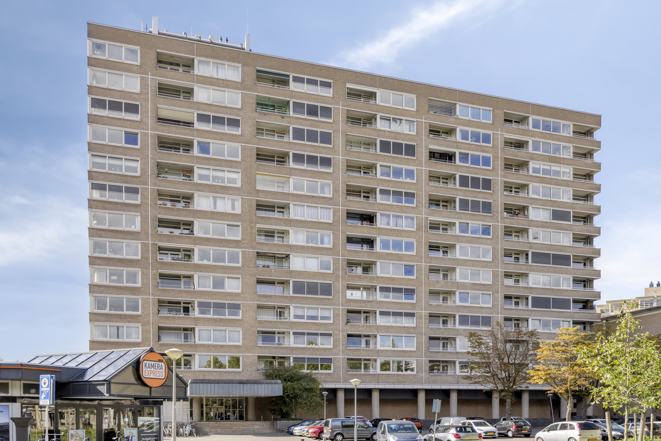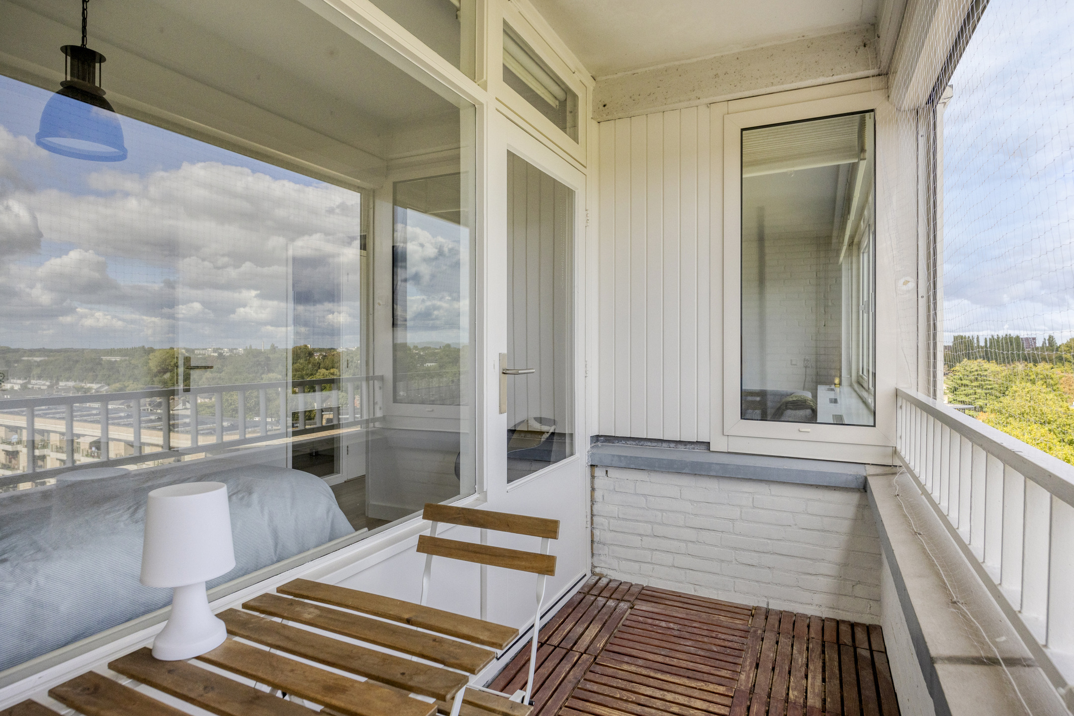 – de ruime slaapkamer biedt toegang tot het balkon en beschikt over een vaste kast en een sfeervol accentbehang;