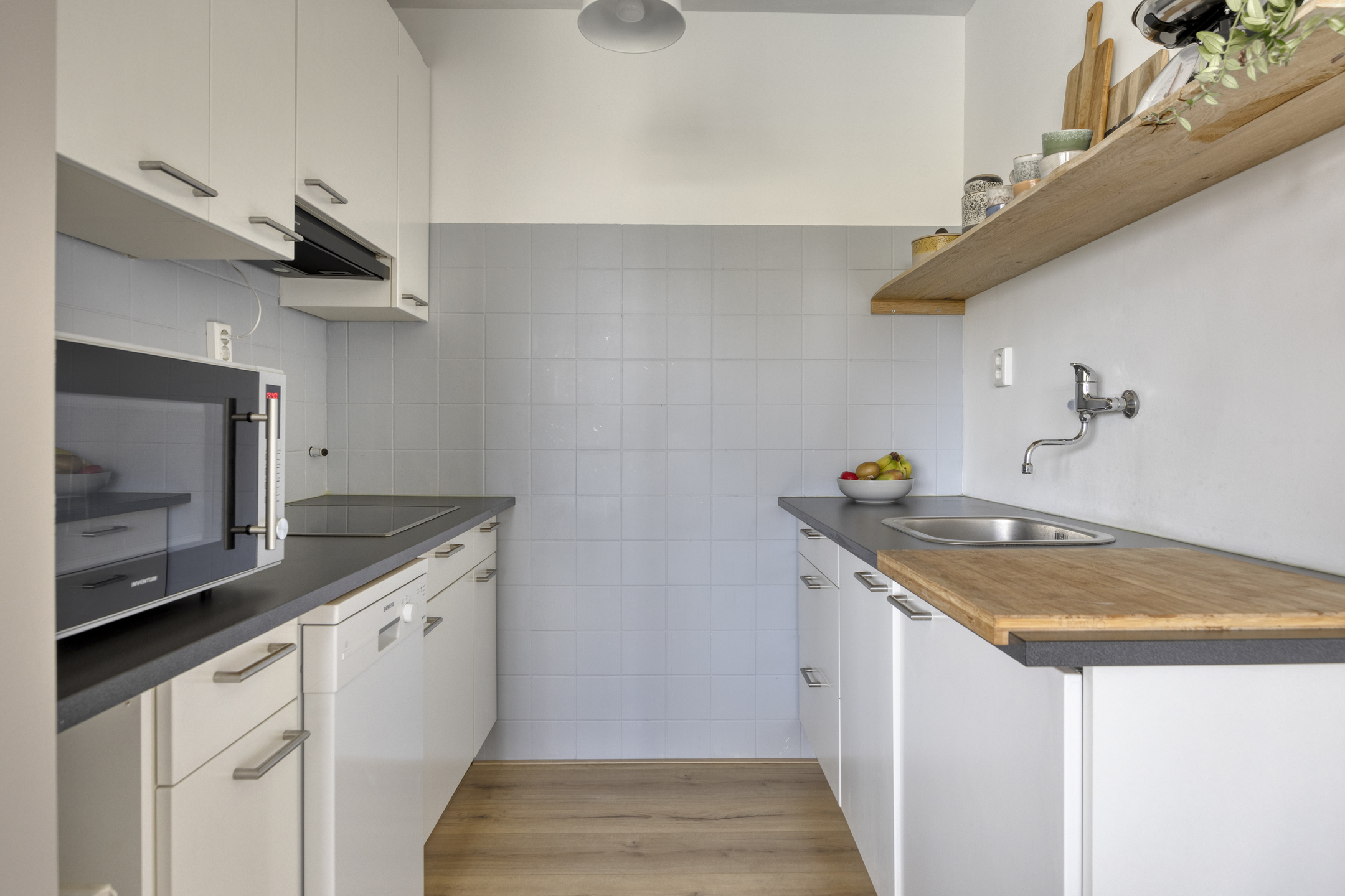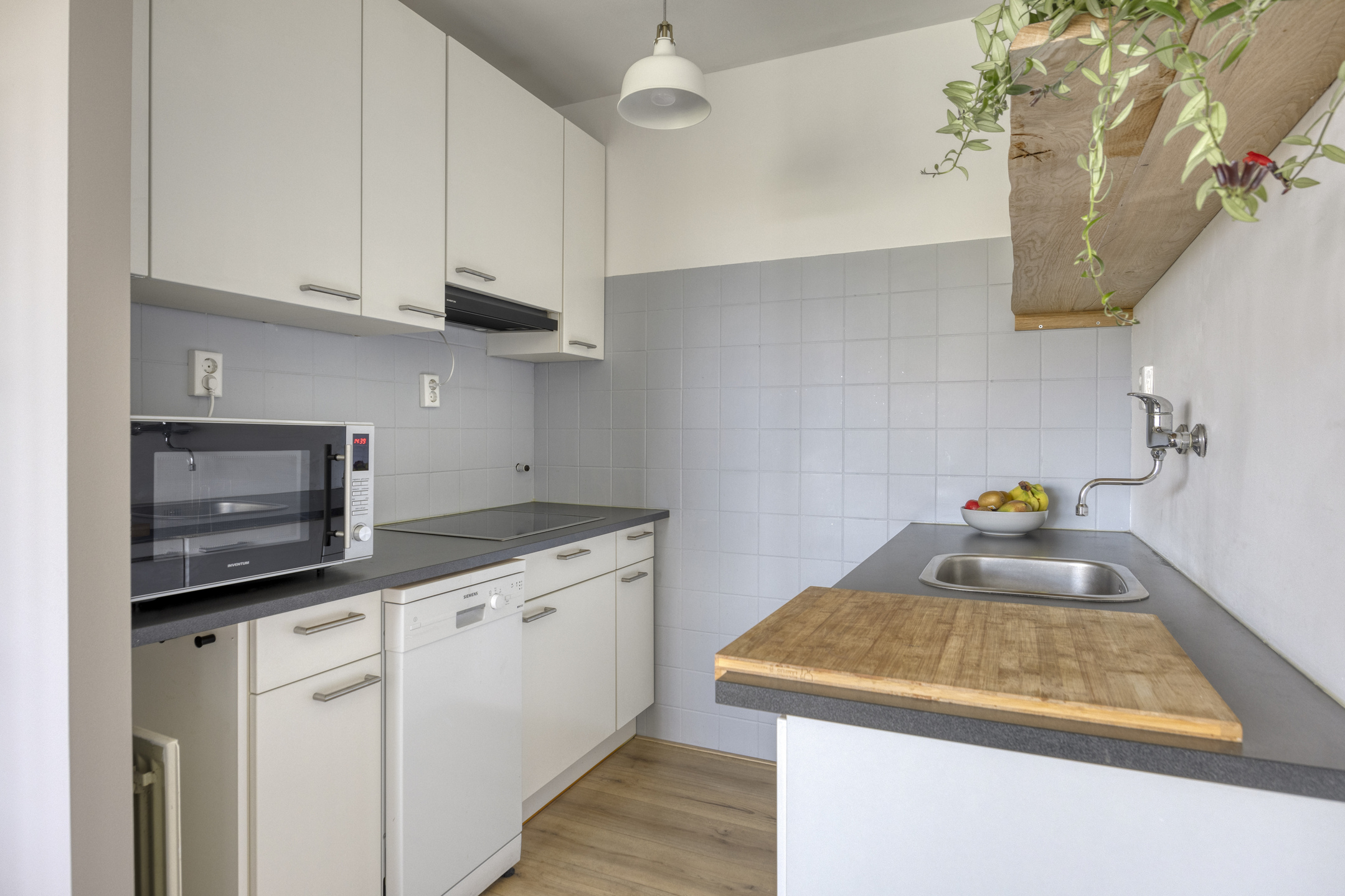– de nette keuken is uitgerust met een kookplaat, afzuigkap, vaatwasser, koelkast en een losse combimagnetron;