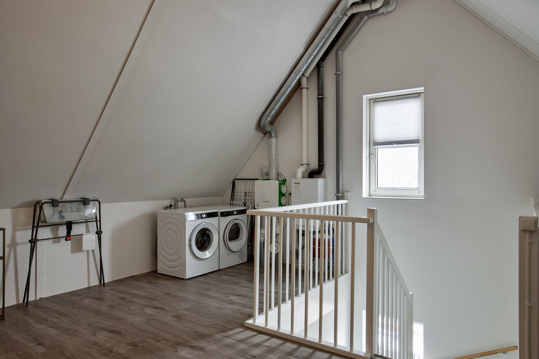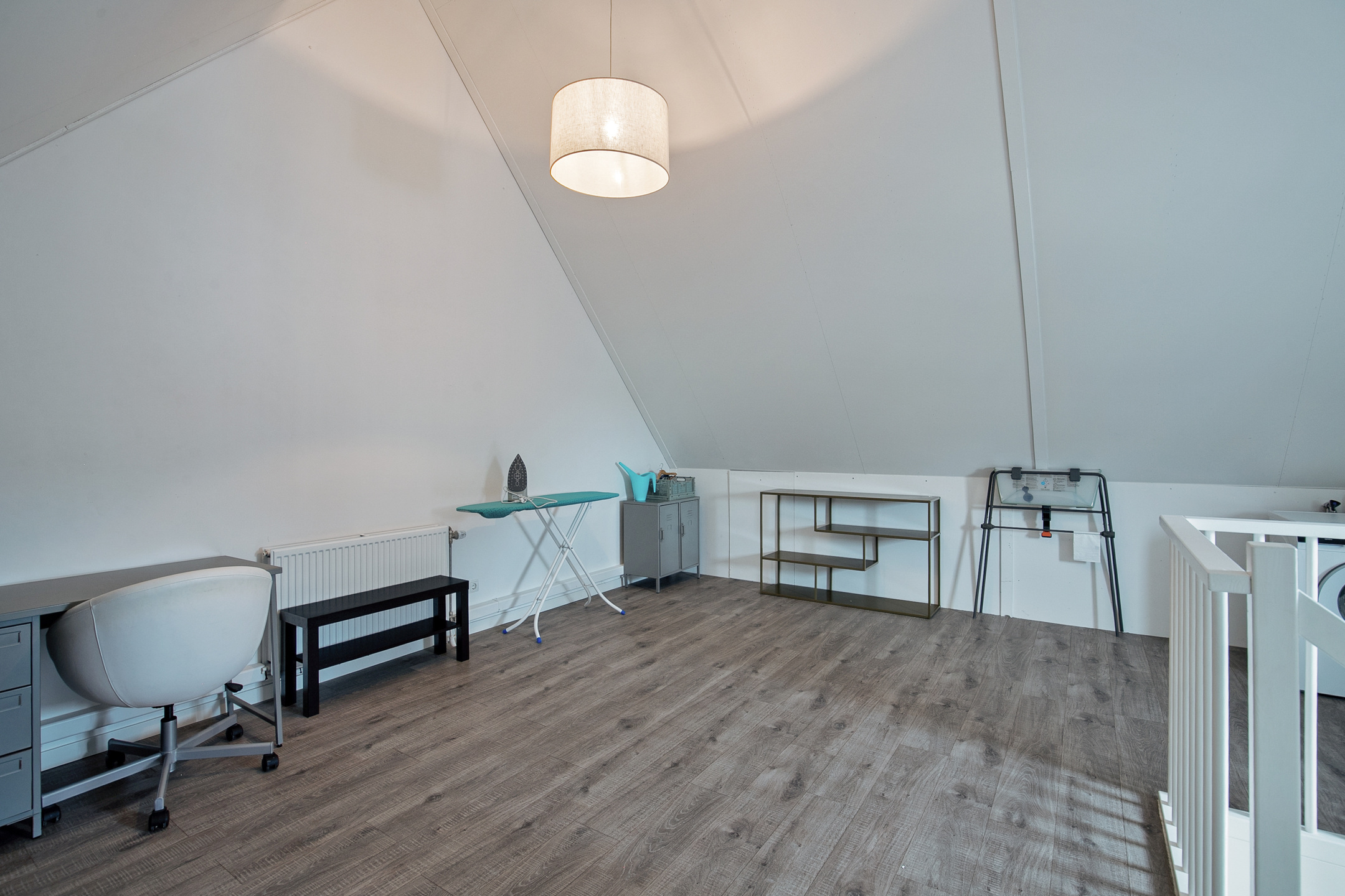 – de tweede verdieping ruim is en biedt volop mogelijkheden voor één of twee extra slaapkamers, met hier tevens de wasmachineaansluiting en de opstelling van de cv-ketel (Intergas, 2020), daarnaast is er praktische extra bergruimte aanwezig achter de knieschotten;