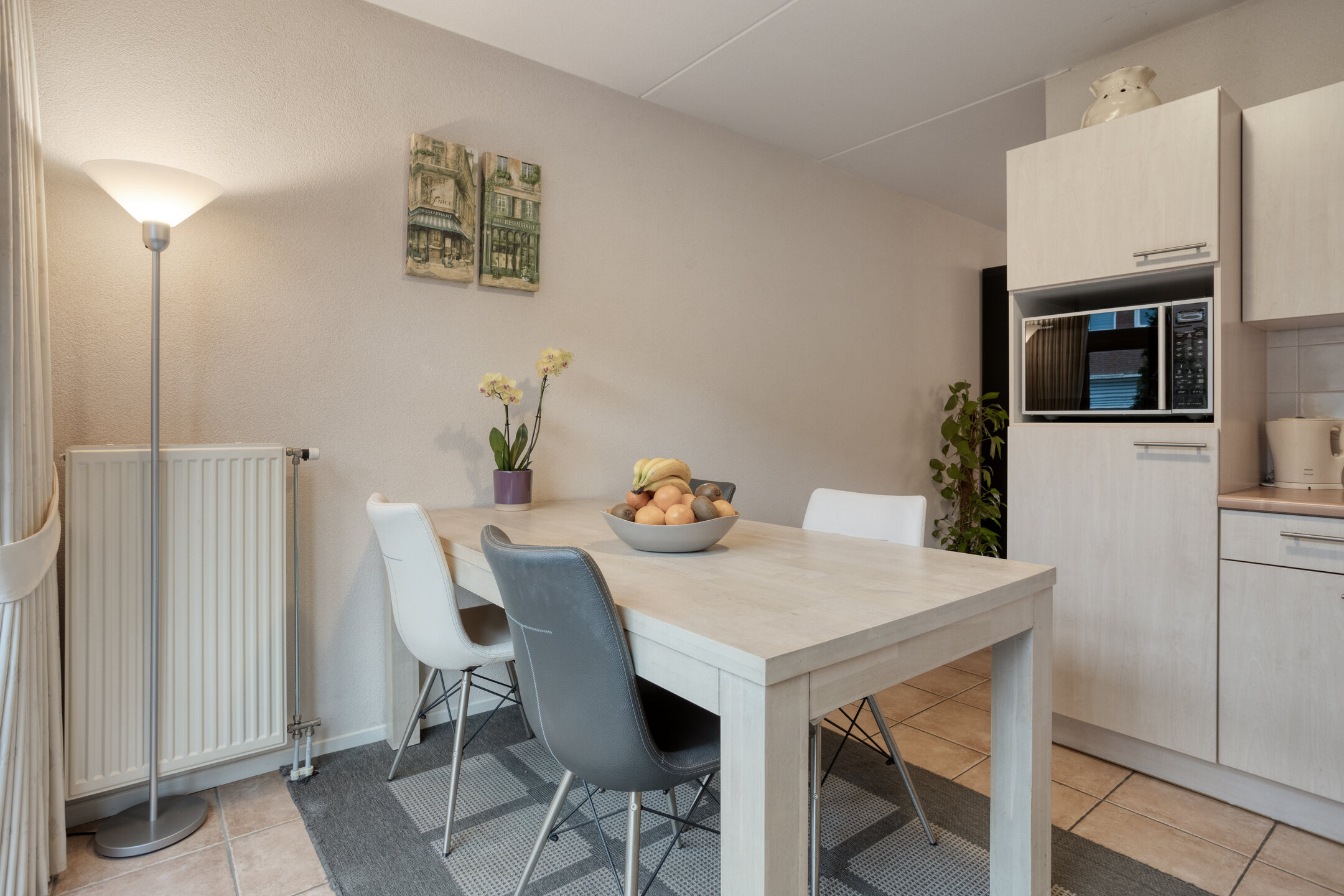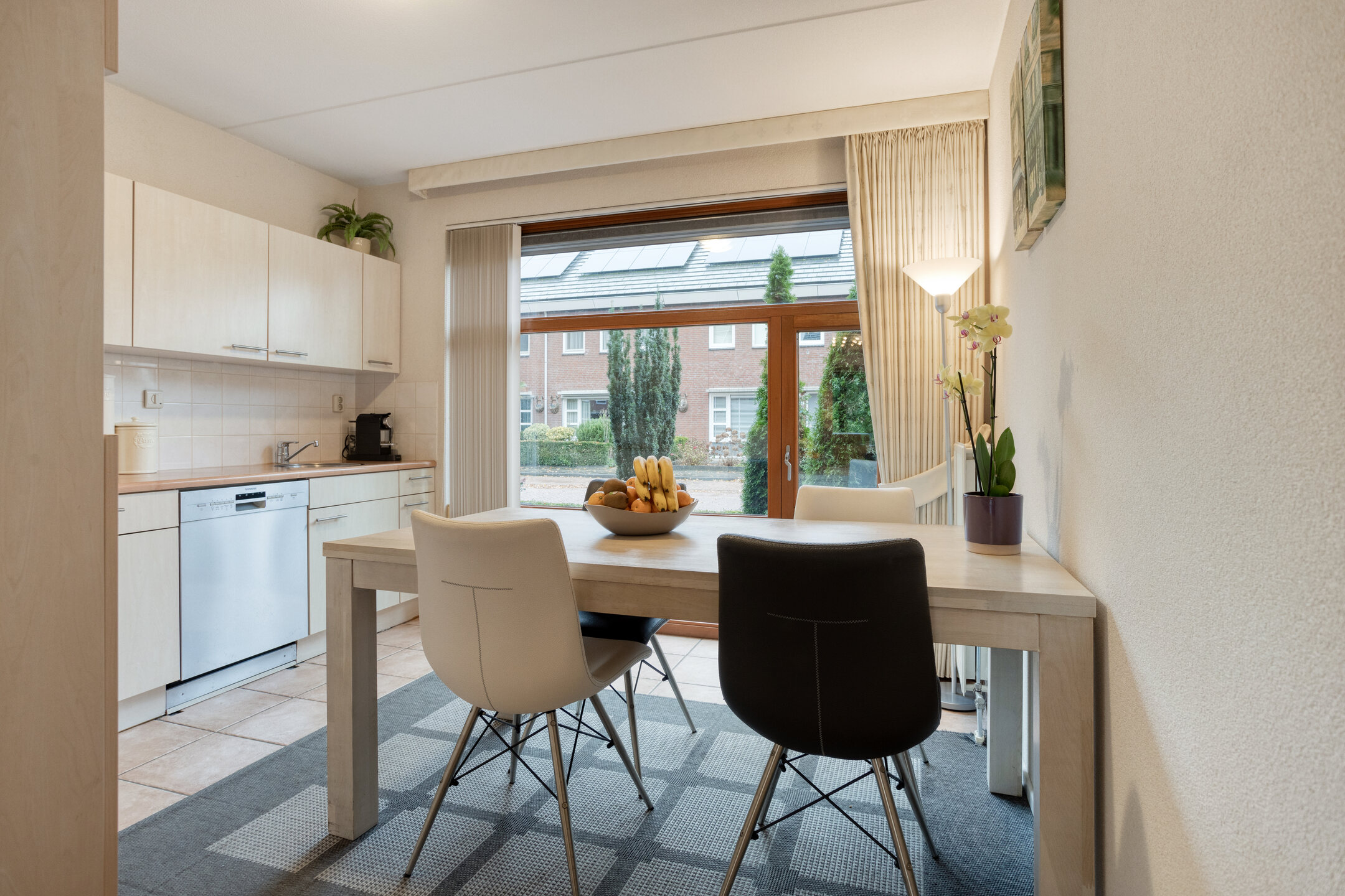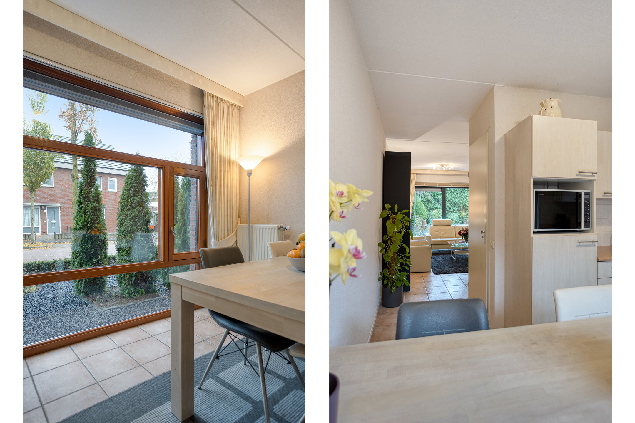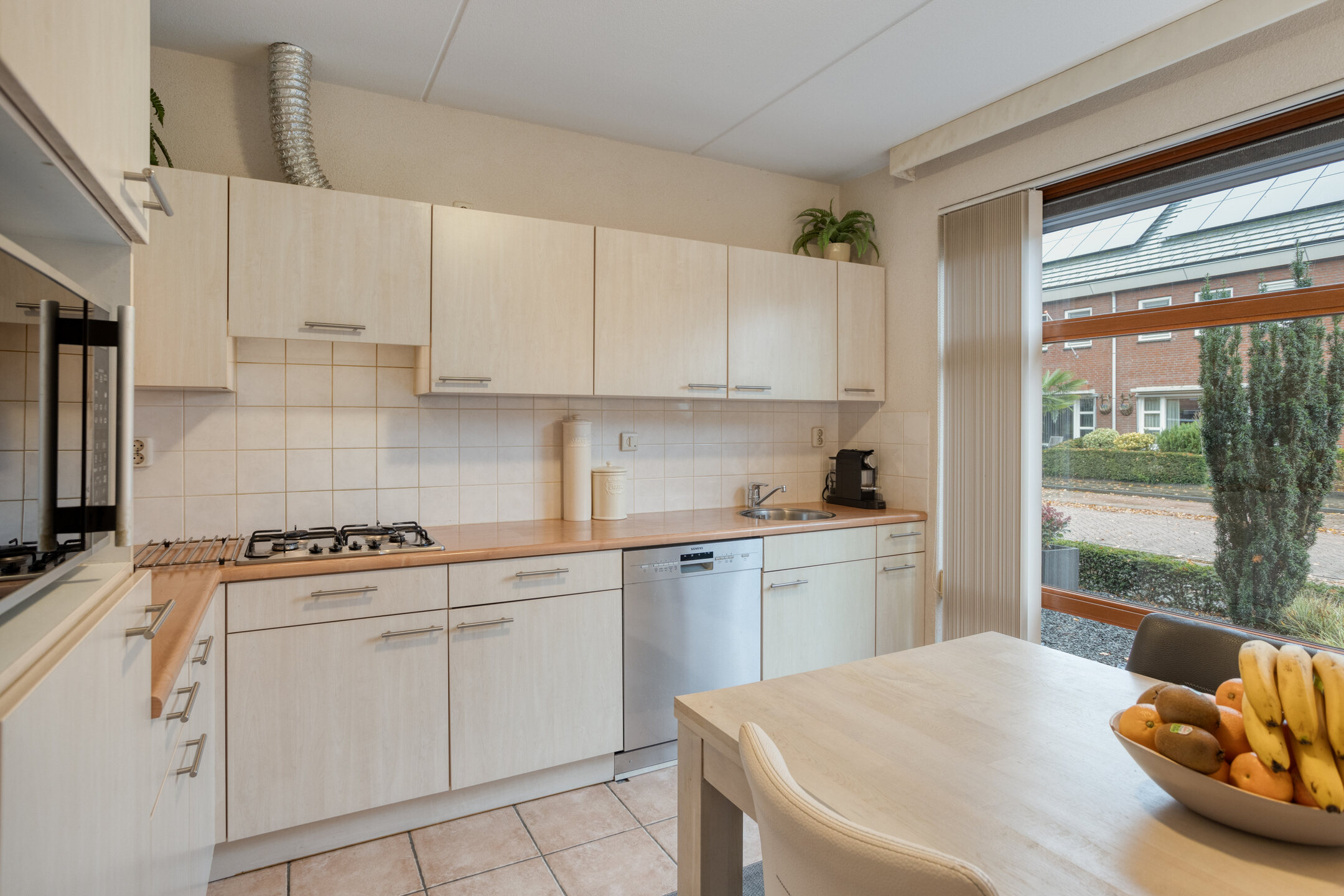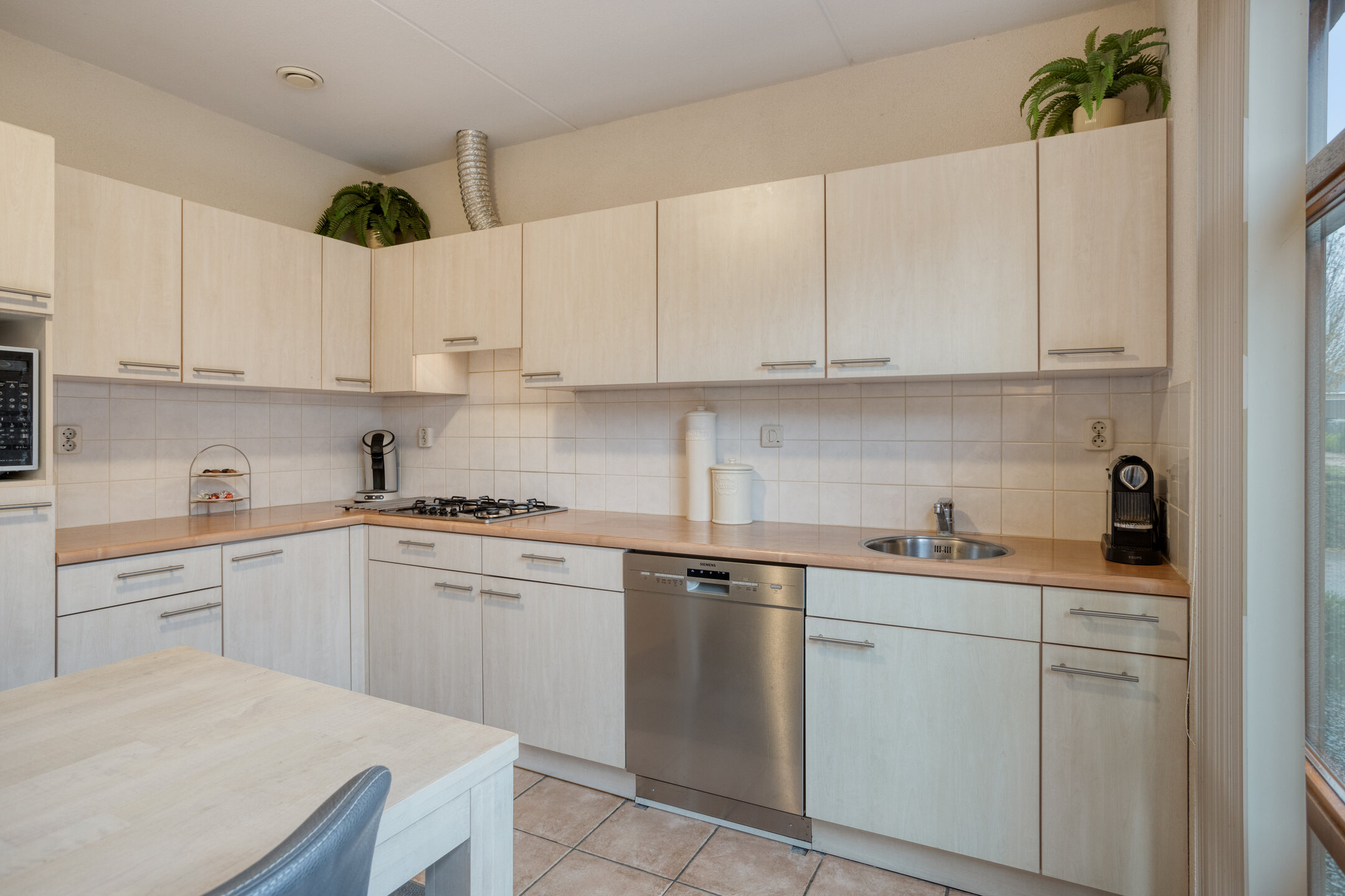 – de woonkeuken aan de voorzijde veel ruimte biedt voor een grote eettafel, en is ingericht met een nette keukenopstelling (2002) voorzien van een gaskookplaat, afzuigkap, koelkast en vaatwasser, waardoor je hier zowel praktisch als gezellig kunt koken en tafelen;