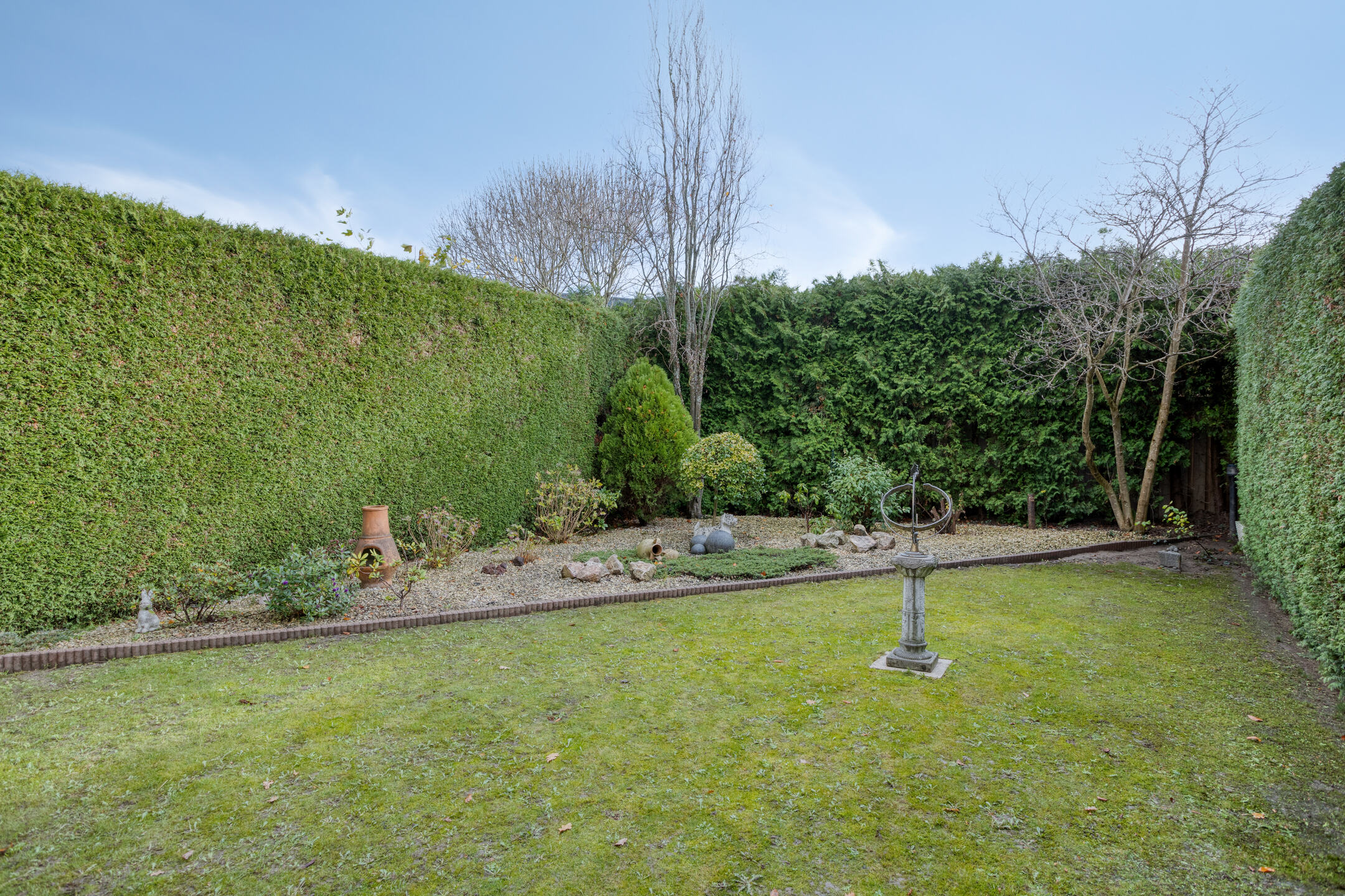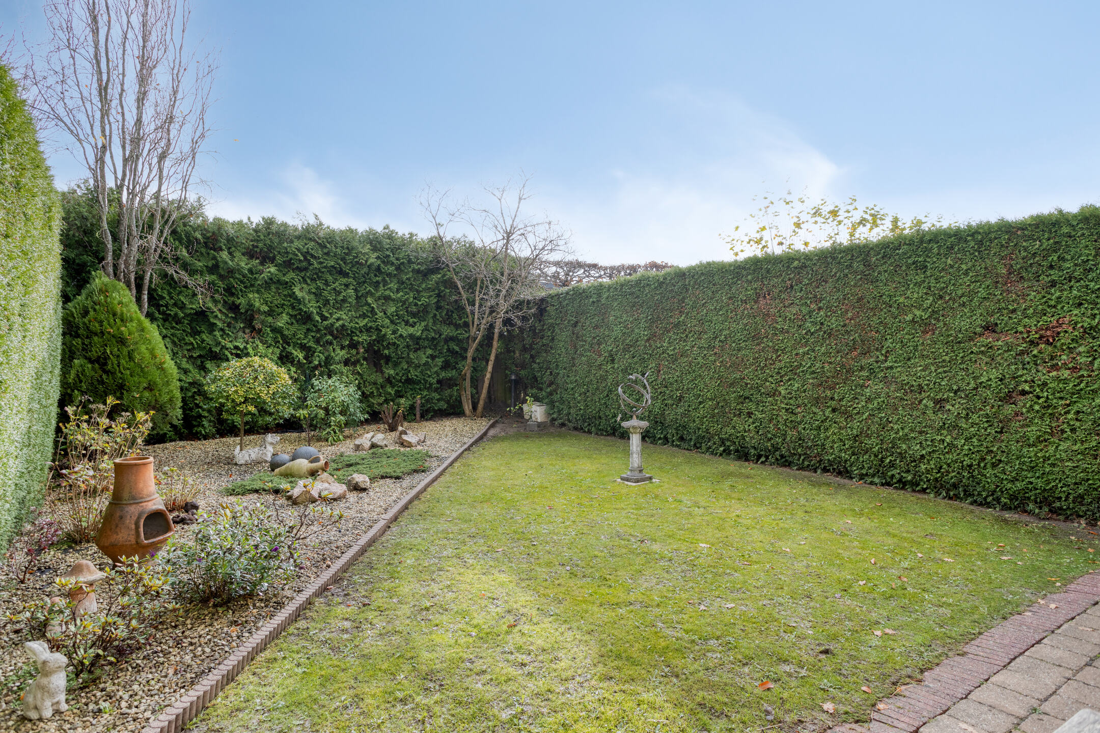 – de achtertuin op het zuidoosten ligt, volledig omsloten is door hoge groenblijvende hagen en daardoor volop privacy biedt, met zowel een groot gazon als een onderhoudsvriendelijke zone met beplanting;