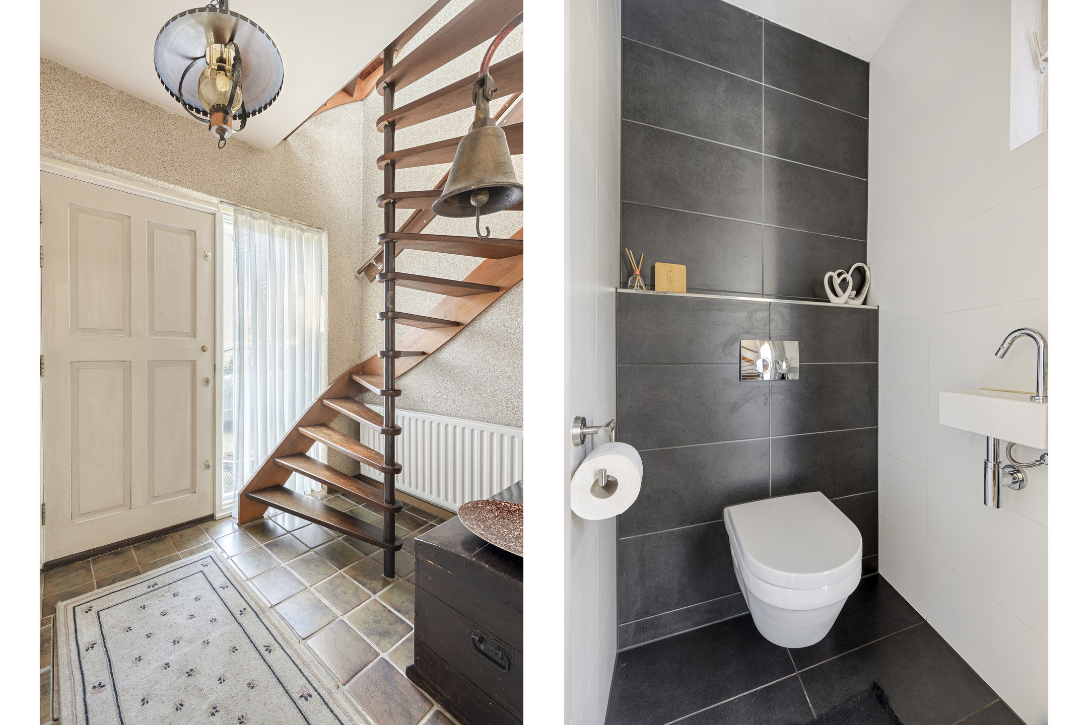 – je via de entree binnenkomt in een ruime hal met meterkast, toilet, trapopgang en toegang tot de woonkamer. Kortom, een fijne en overzichtelijke binnenkomst;
