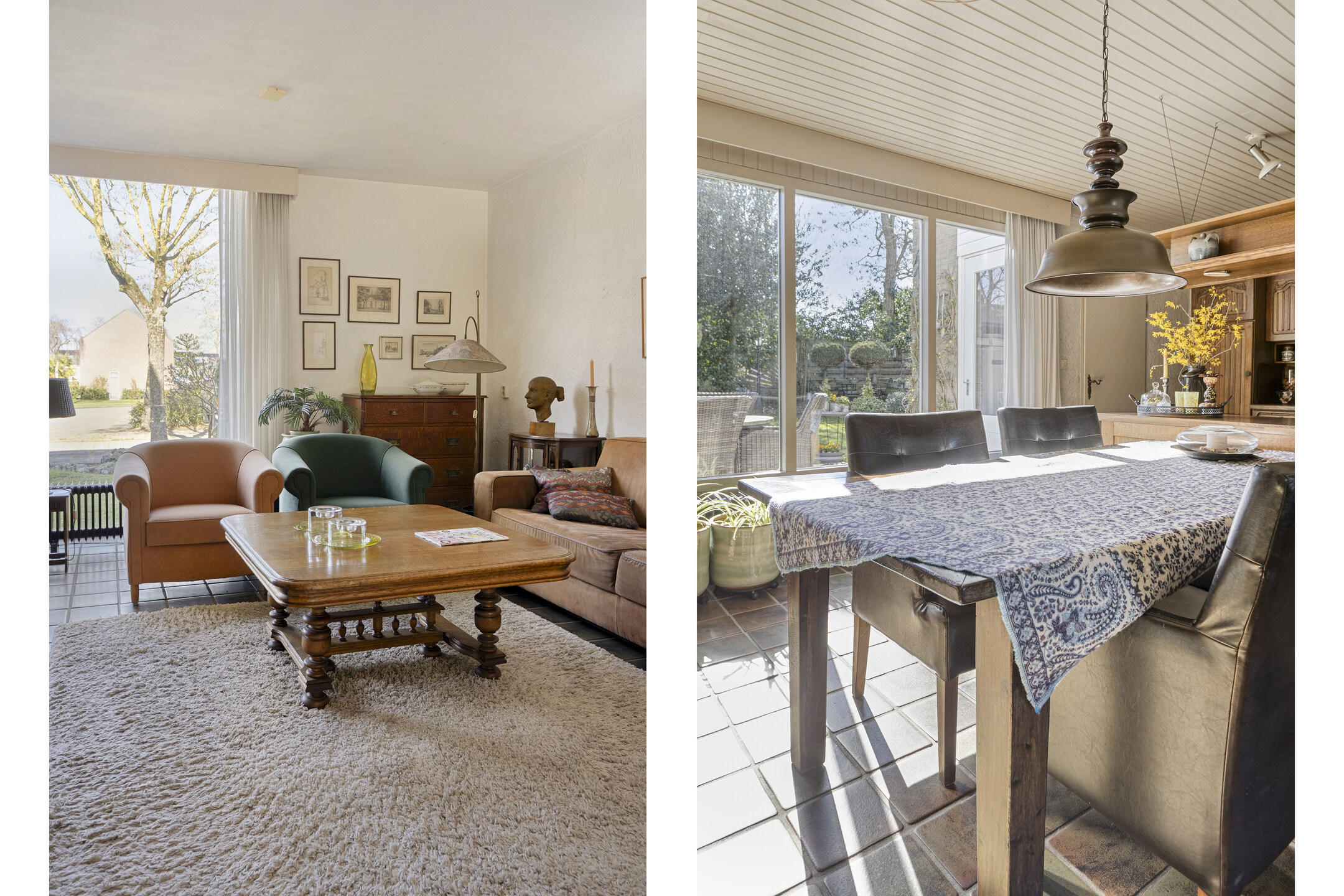 – de woonkamer heerlijk royaal is opgezet en dankzij de grote raampartijen baadt in het daglicht. De open verbinding met de eetkamer zorgt voor een ruimtelijk en gezellig geheel waar je met gemak familie en vrienden ontvangt;