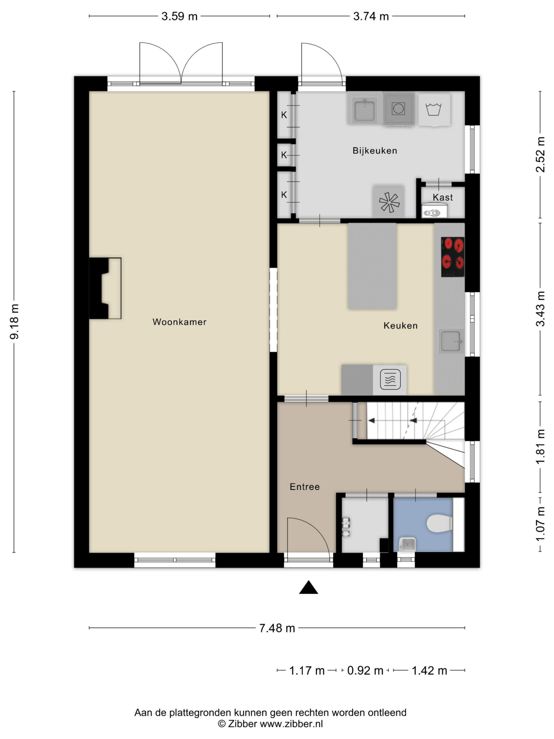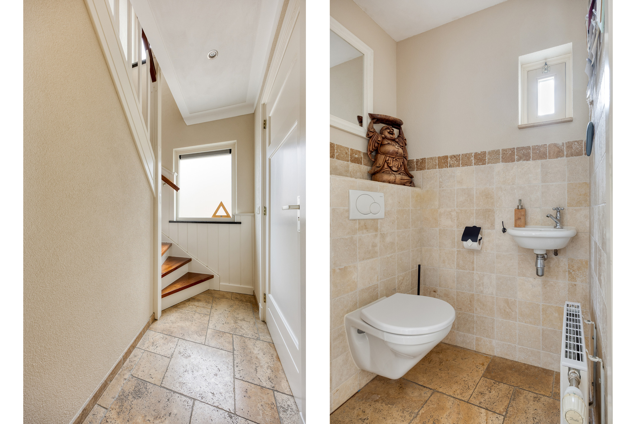 – de entree toegang biedt tot de hal met meterkast, toiletruimte, kelder en de woonkamer, wat zorgt voor een praktische en complete indeling;