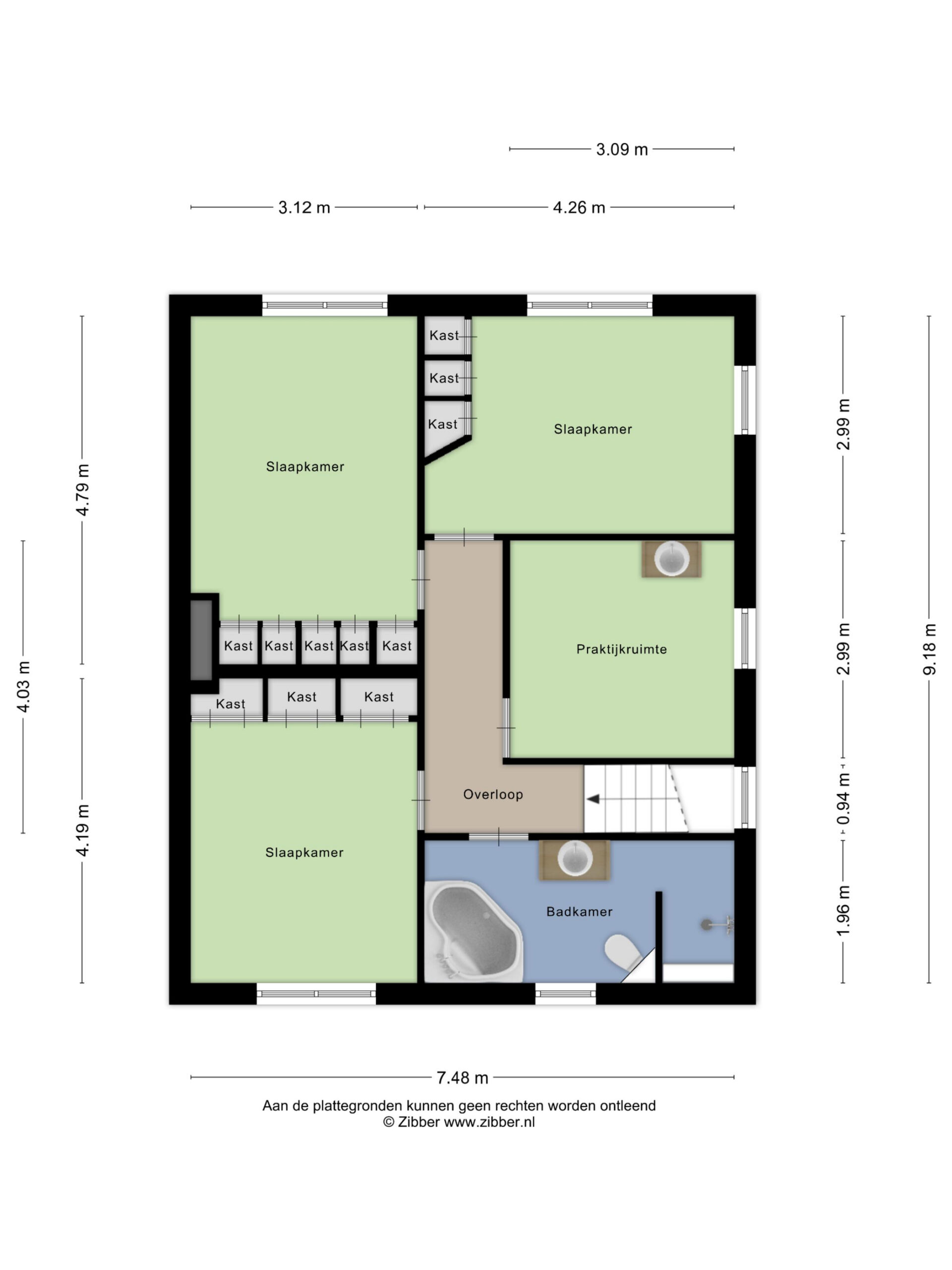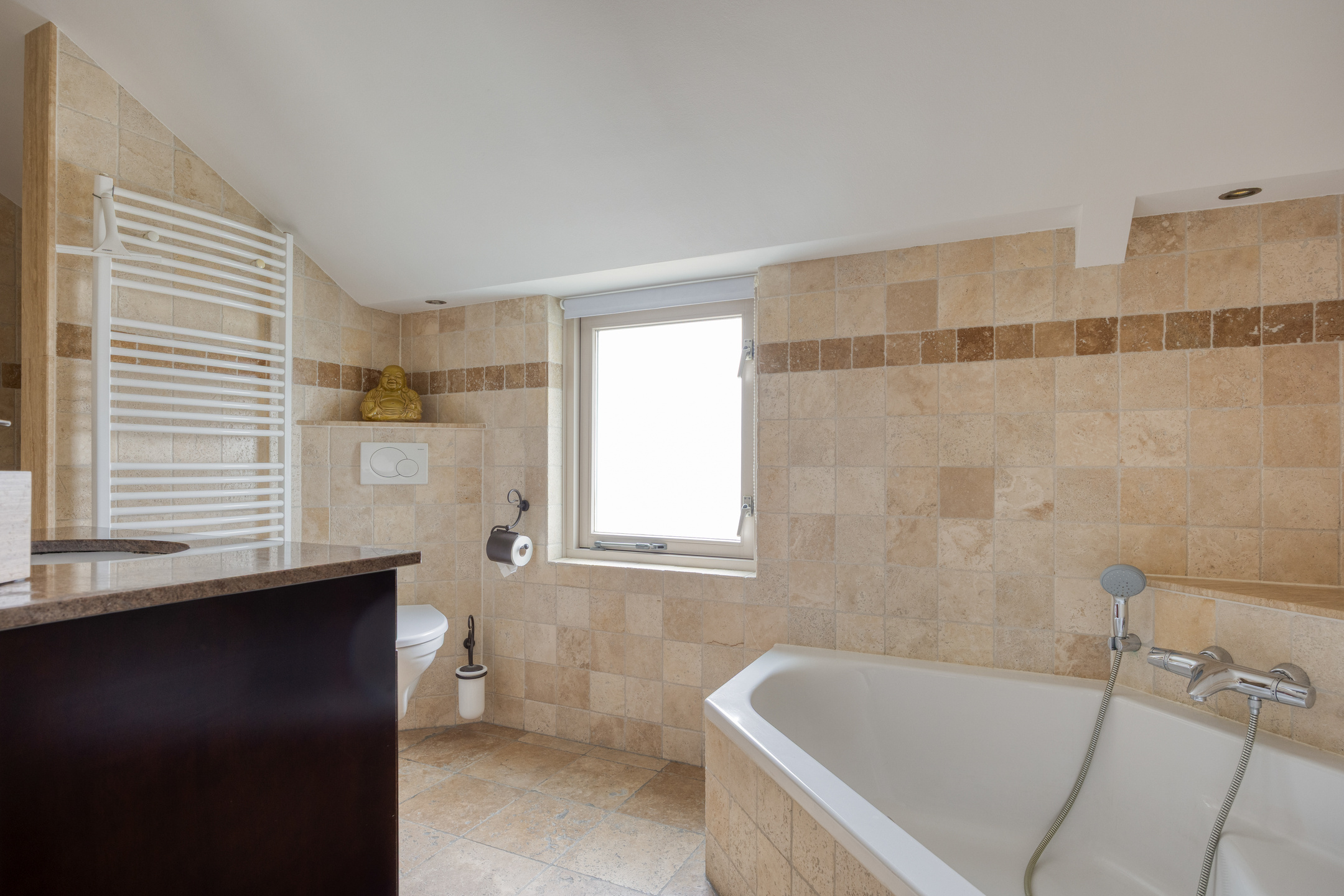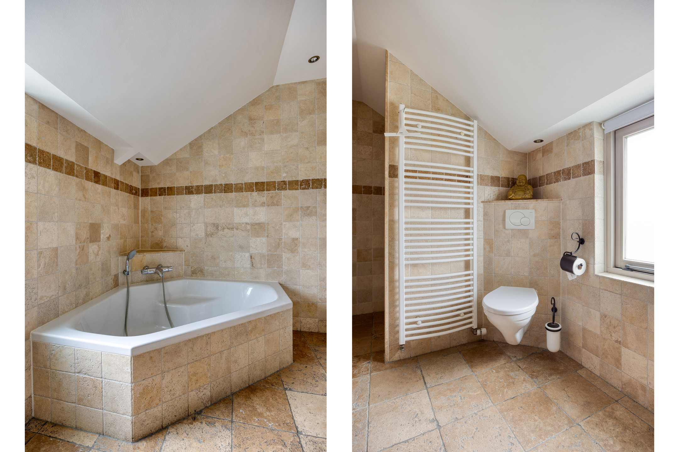 – de badkamer compleet is uitgevoerd met ligbad, douche, toilet en wastafel;