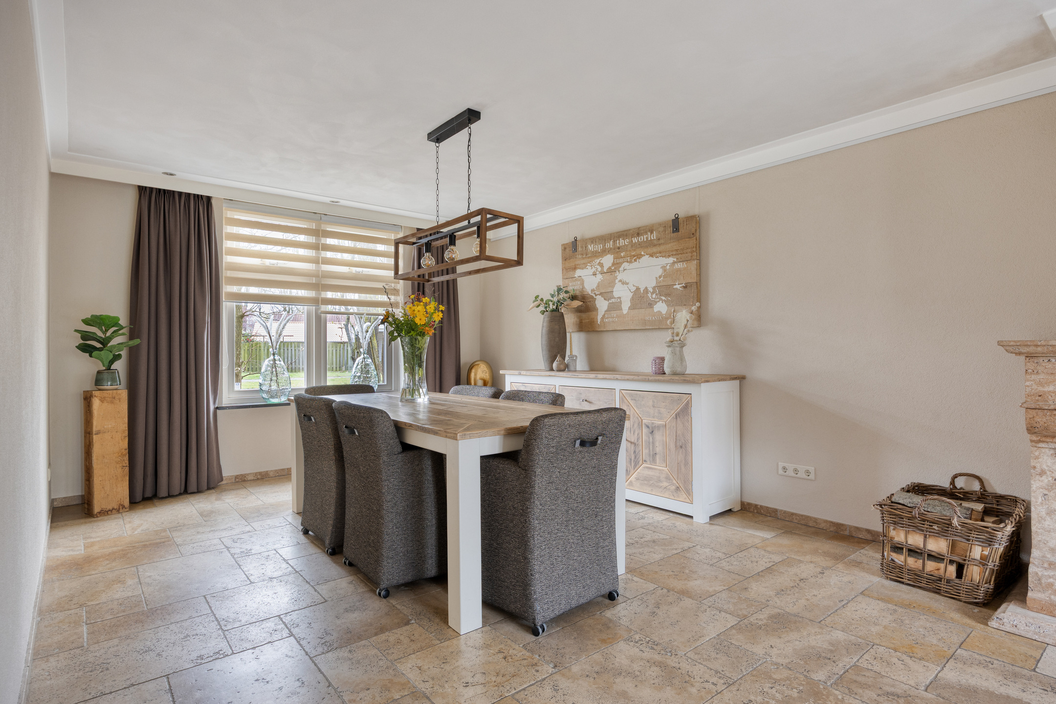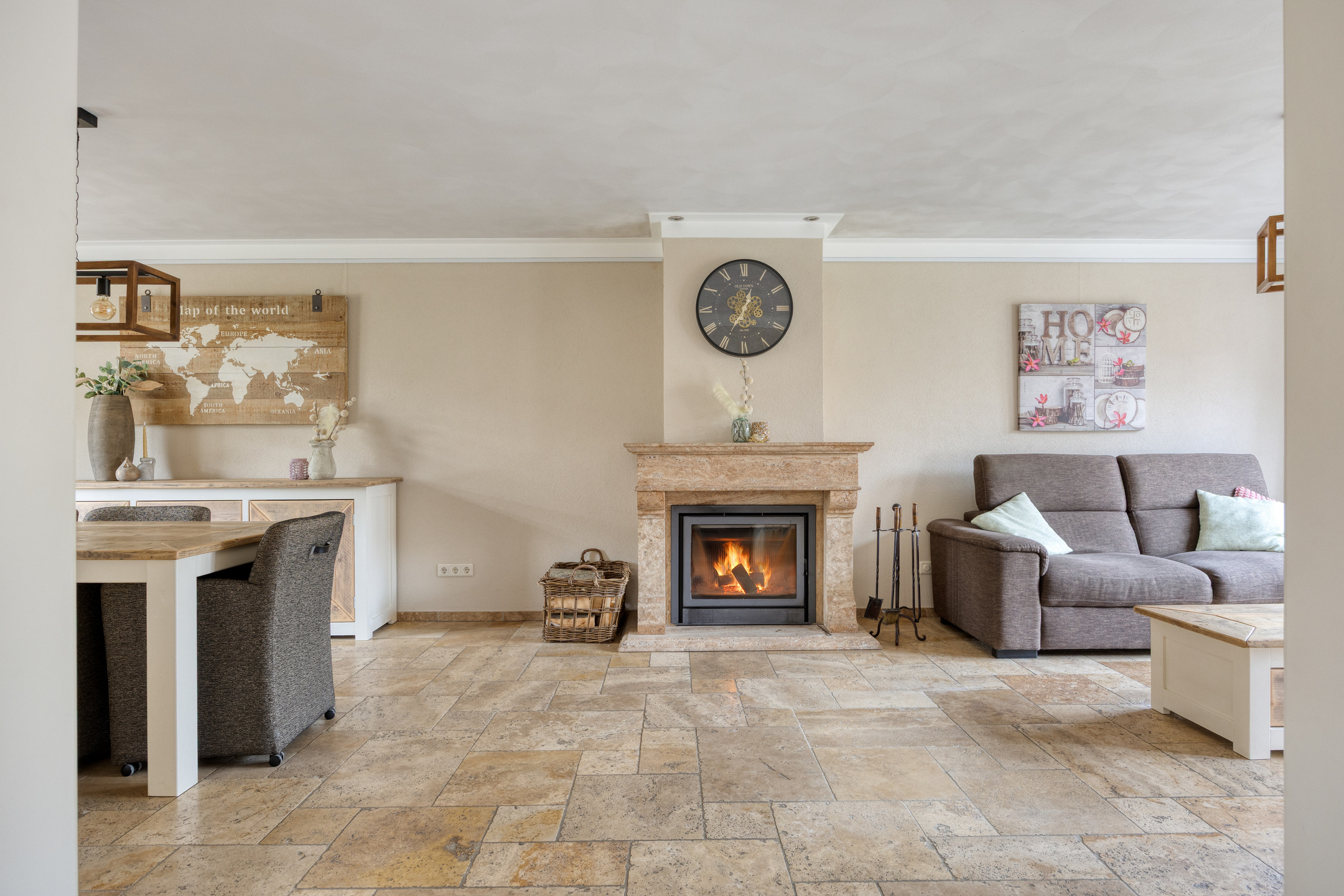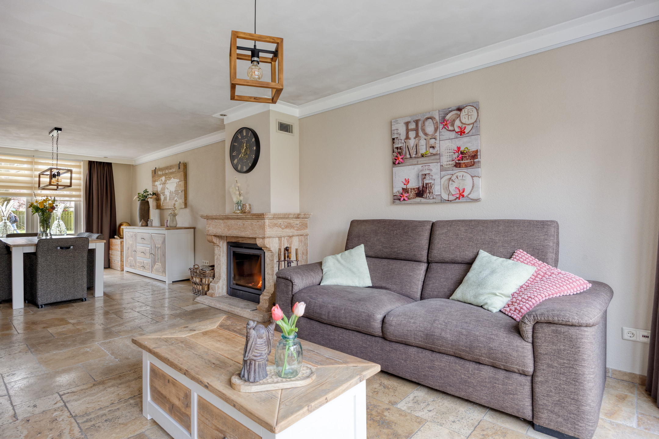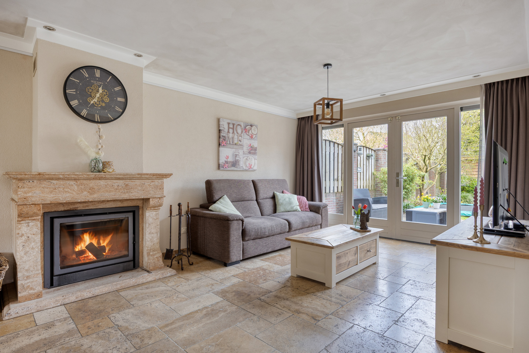 – de woonkamer heerlijk licht is door de grote raampartijen en beschikt over een sfeervolle haard als centraal punt;