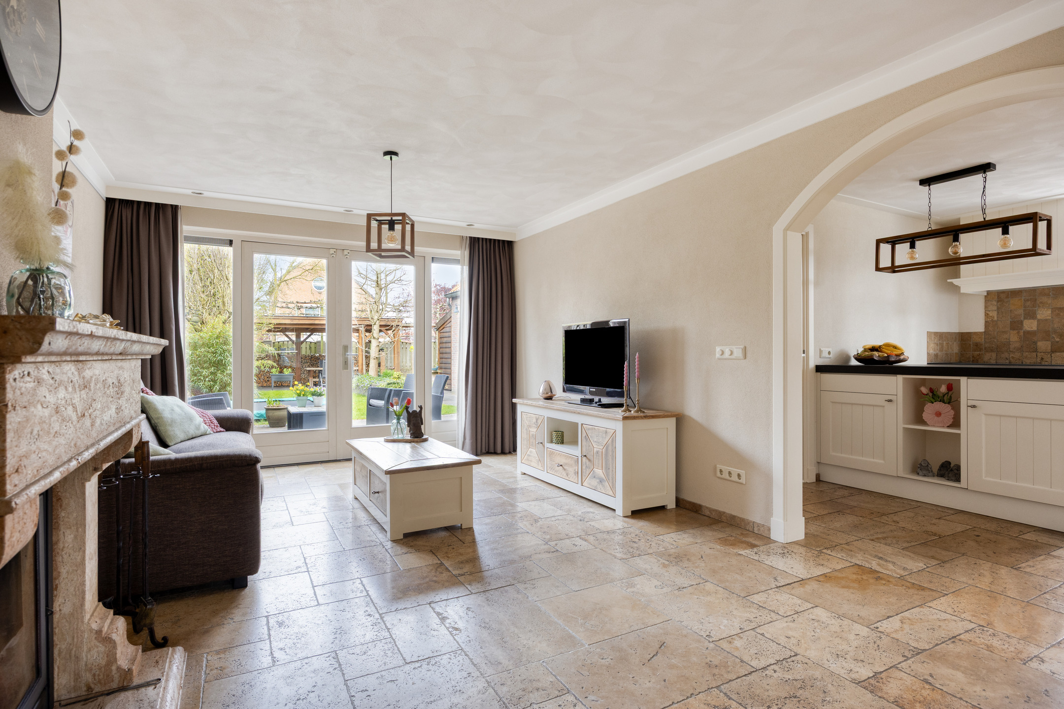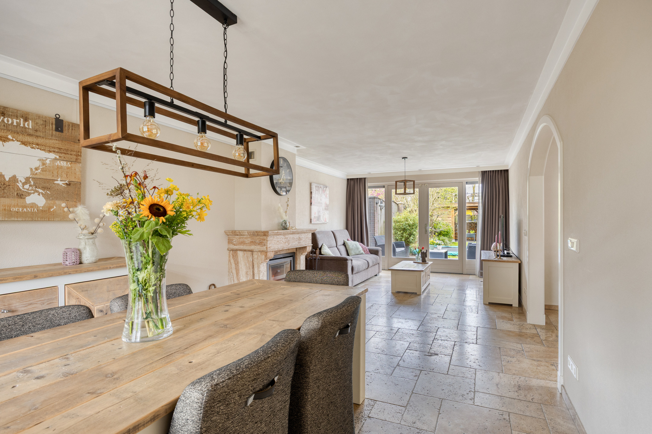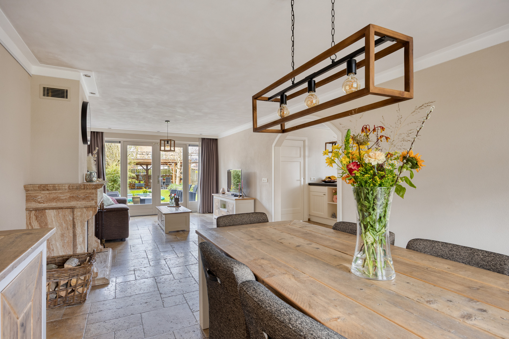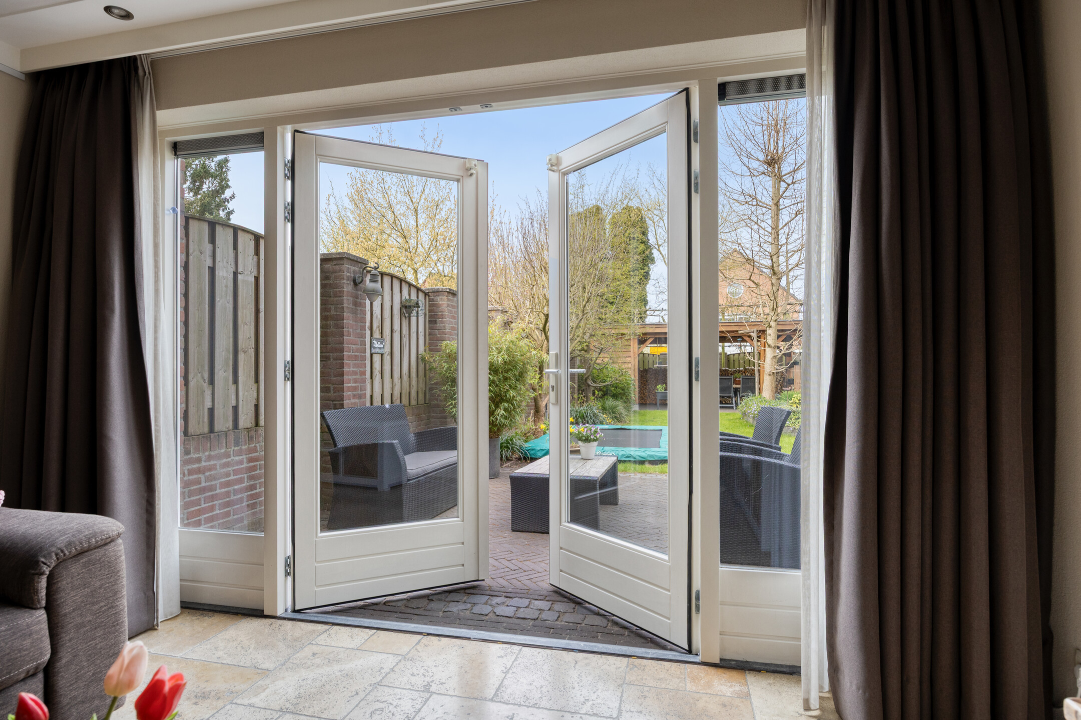 – via de dubbel openslaande deuren een directe verbinding met de tuin ontstaat, waardoor binnen en buiten mooi in elkaar overlopen;