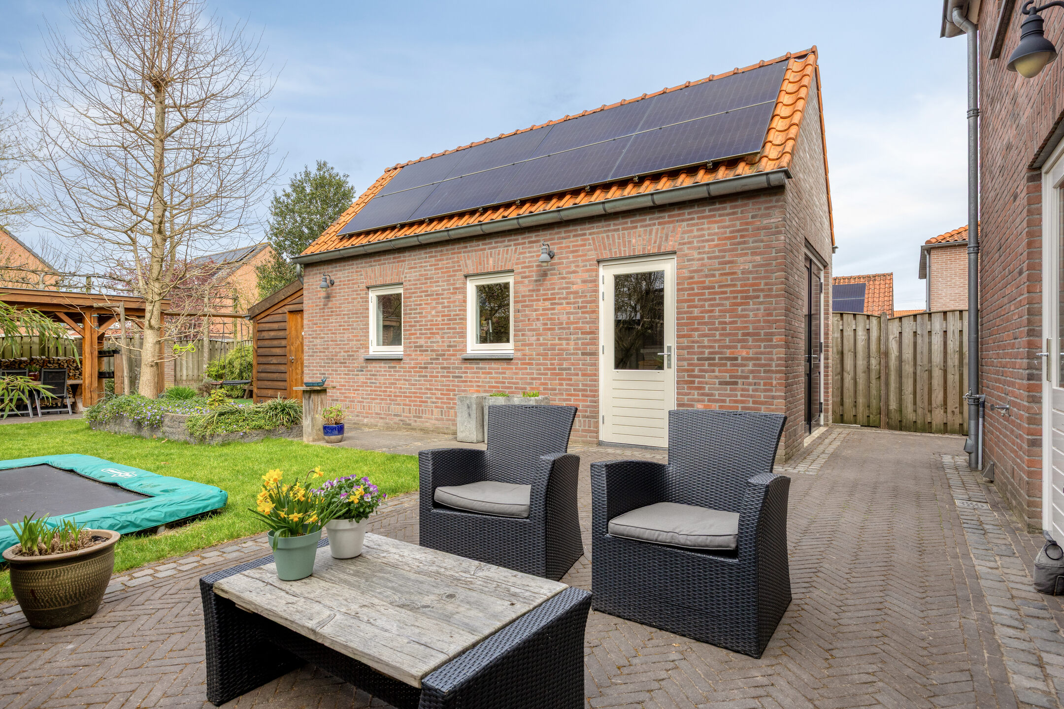 – de achtertuin, welke ligt op het noordwesten, meer dan 20 meter diep is. Hierdoor kun je volop genieten van de middag- en avondzon;