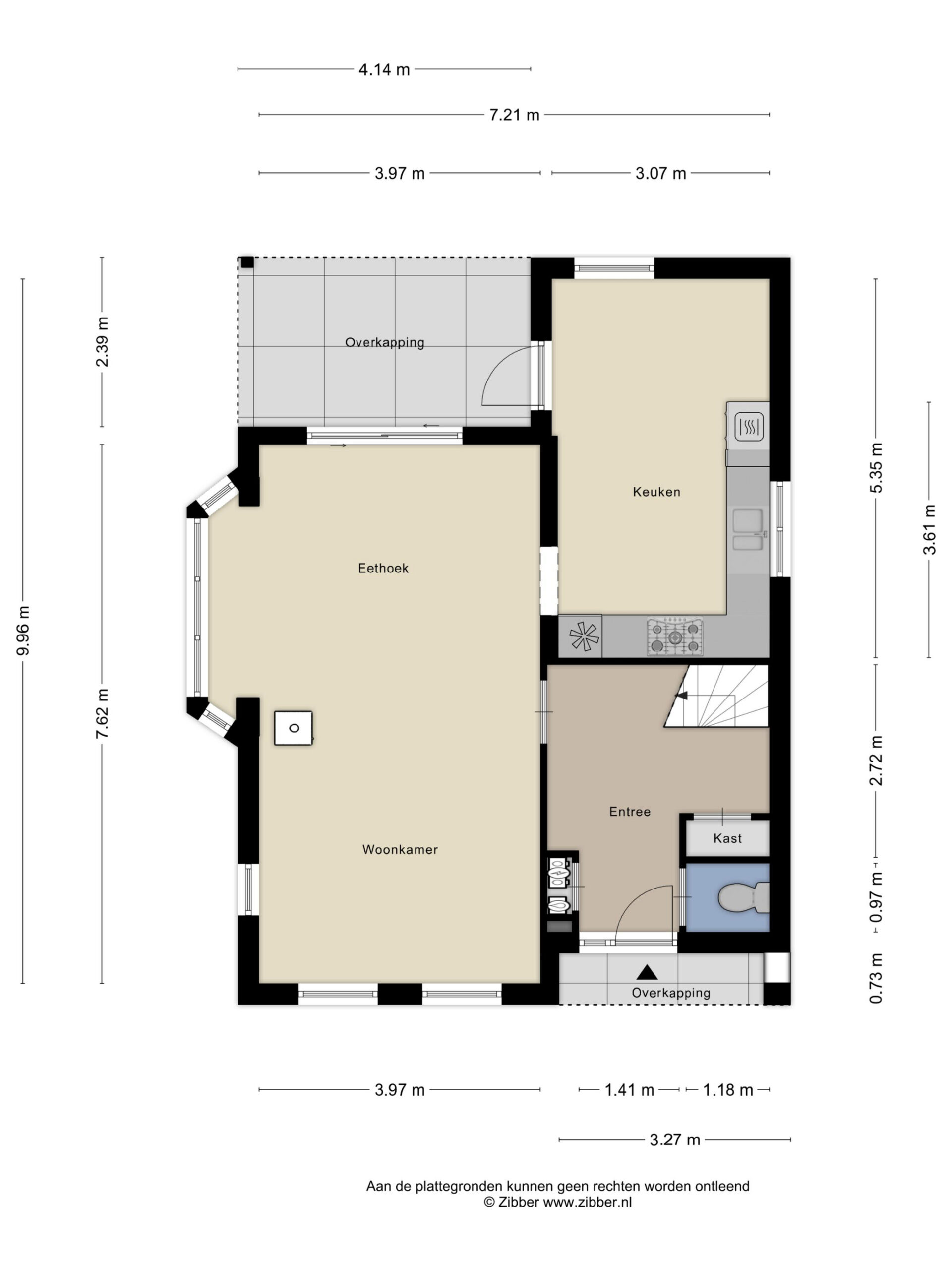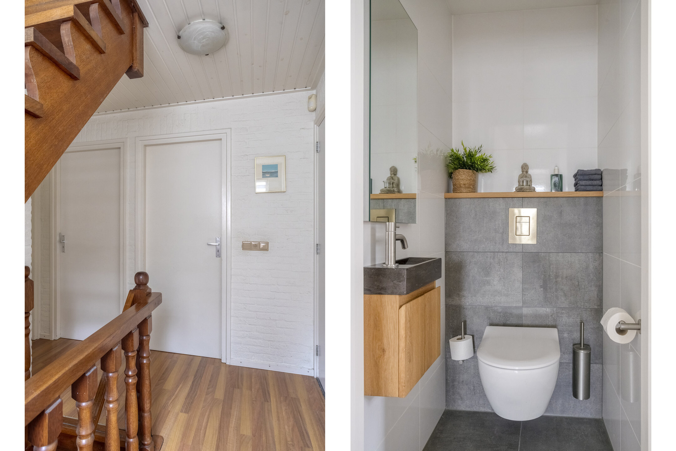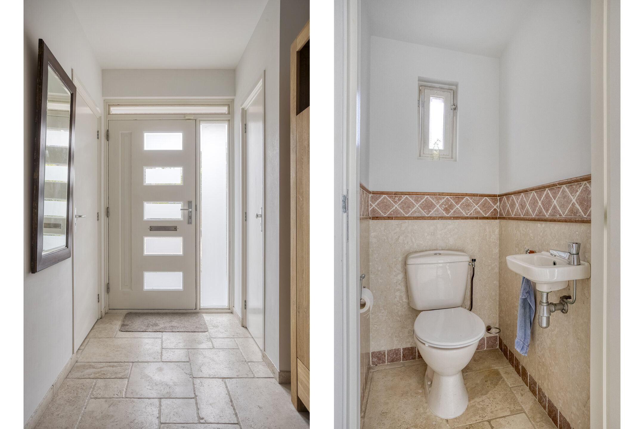 – de ruime hal beschikt over een garderobehoek, meterkast, toilet en toegang tot de woonkamer;