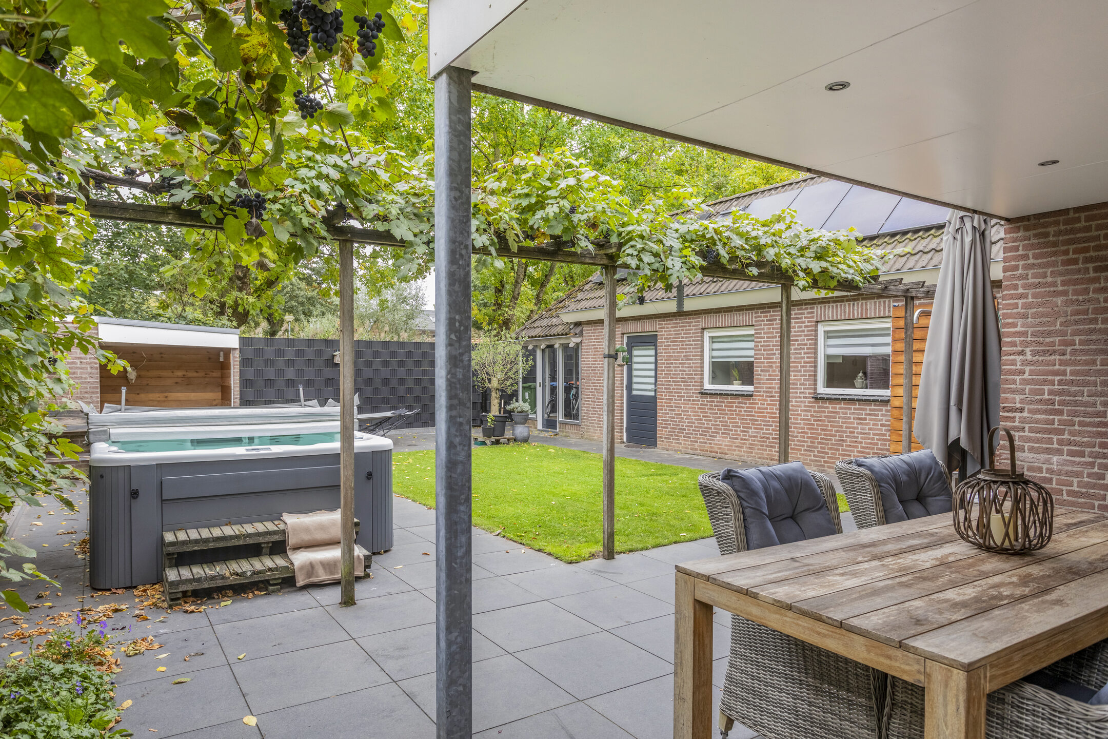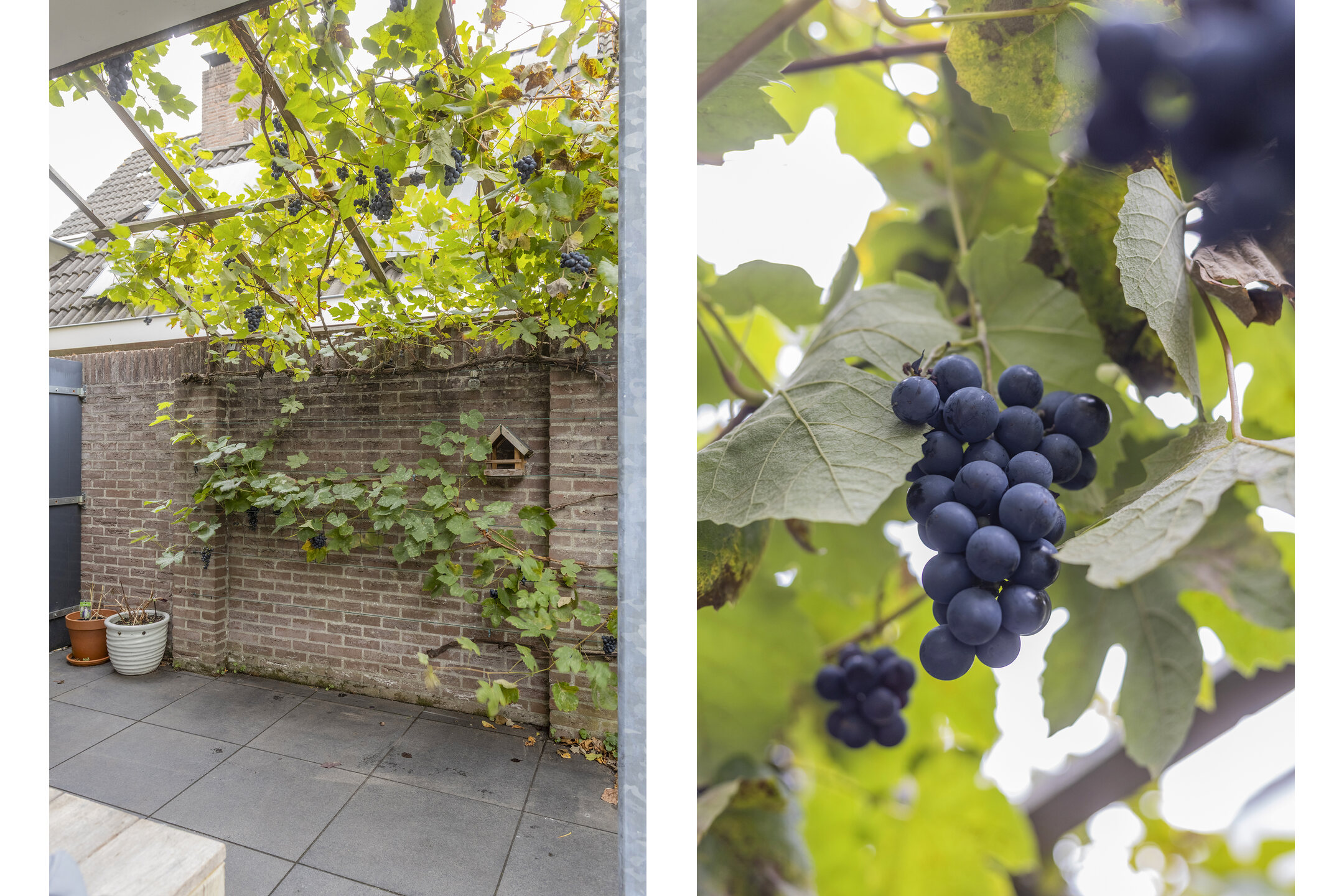 – vanuit de schuifpui bereik je de overkapping aan de achterzijde, waar je heerlijk kunt genieten van de tuin en omringd door druiventrossen, waan je je in zuid-europese sferen;