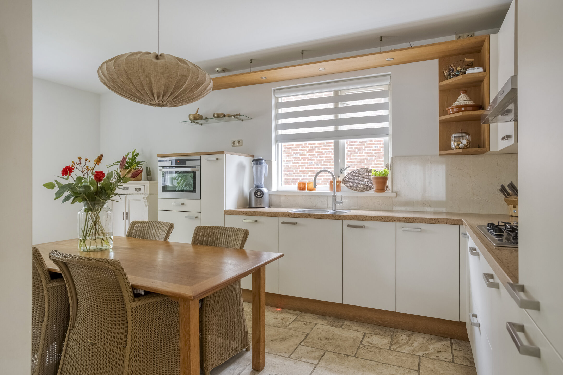 – de woonkeuken is praktisch ingedeeld, gerenoveerd in 2020 en uitgerust met nieuwe kastdeuren en scharnieren, een oven, afzuigkap en een Quooker;