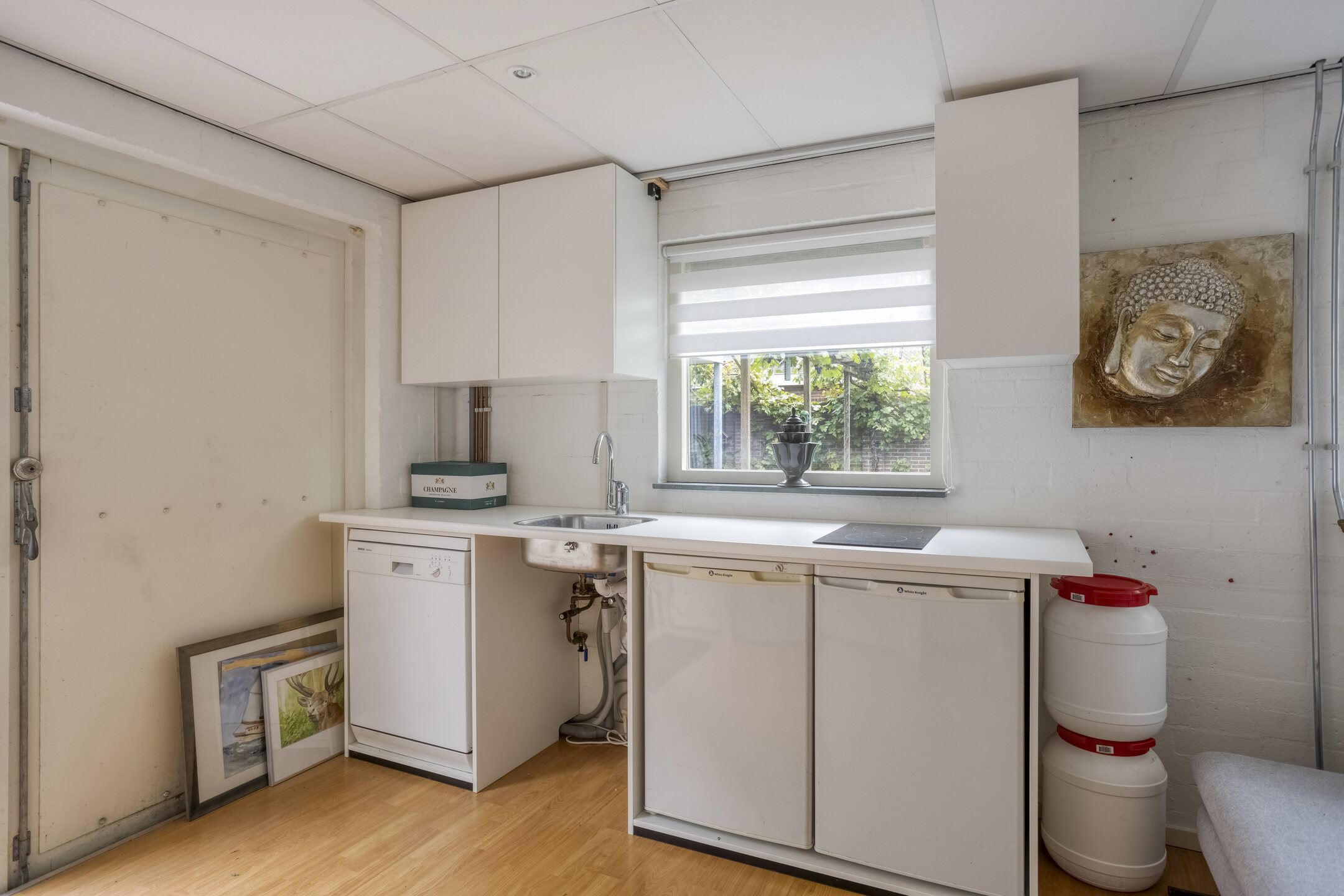 – het bijgebouw beschikt over een multifunctionele ruimte met eigen cv, keukenblok met spoelbak, afwasmachine en 2-pits inductie, systeemplafond met inbouwspots en laminaatvloer; ideaal als werkplek, chillplek voor de jeugd of salon aan huis;