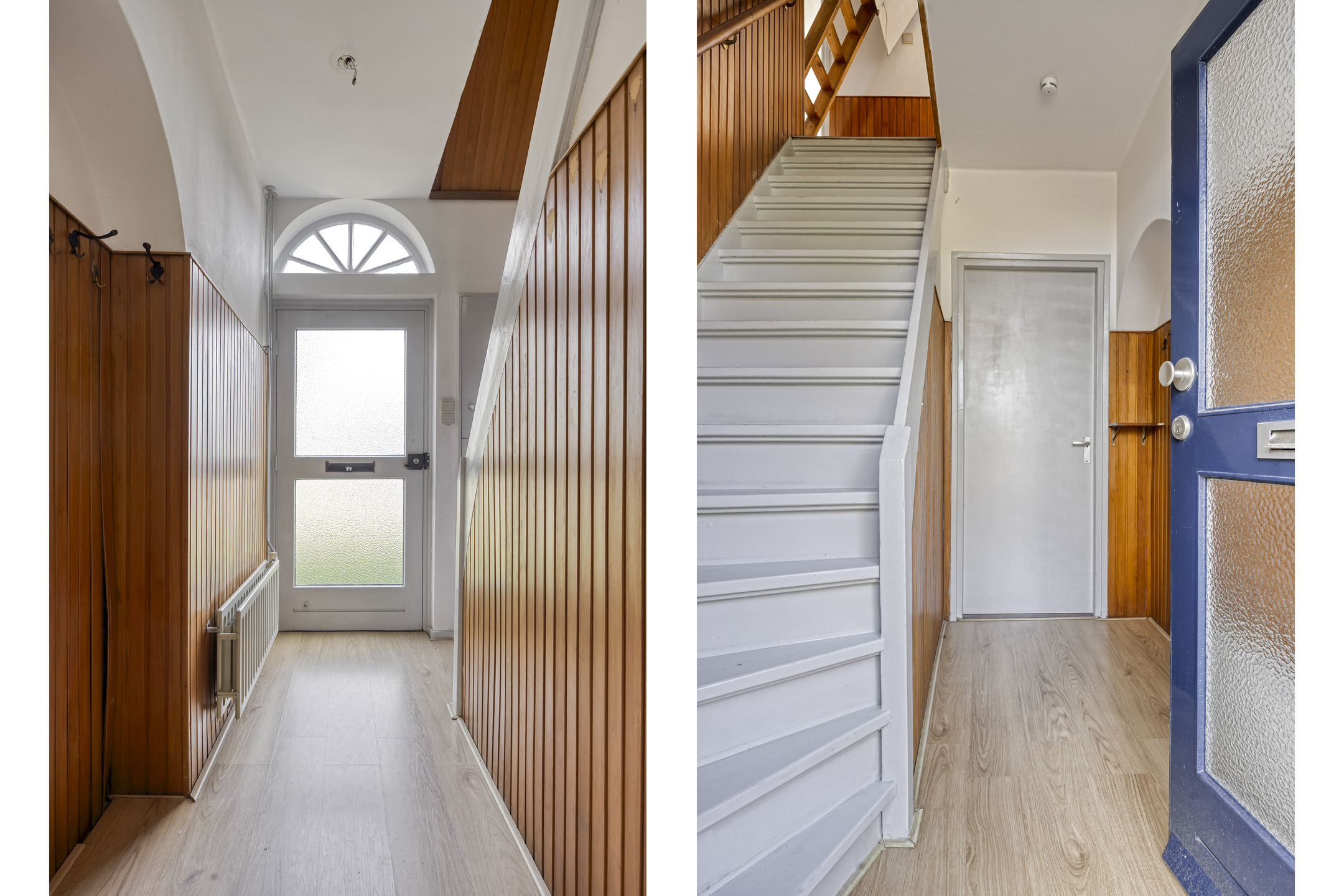 – de hal beschikt over de trapopgang naar de verdieping en toegang tot de woonkamer, keuken en kelder;