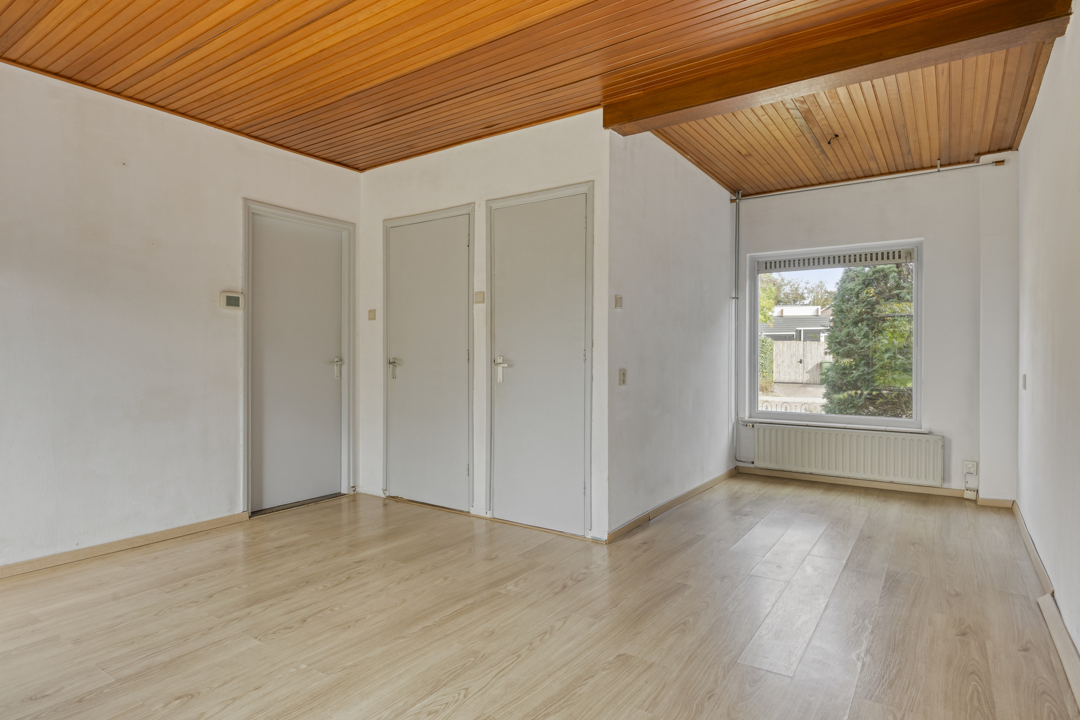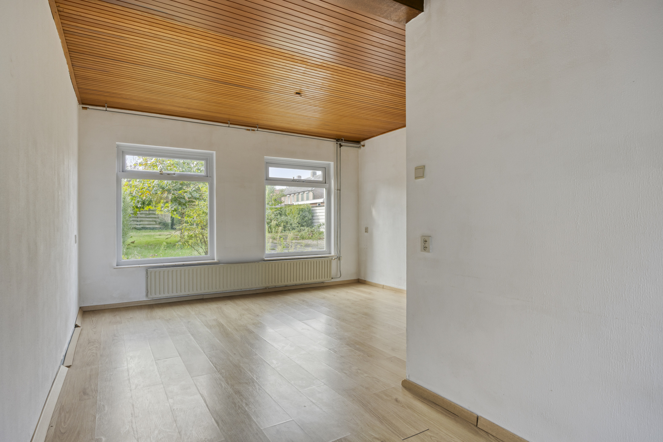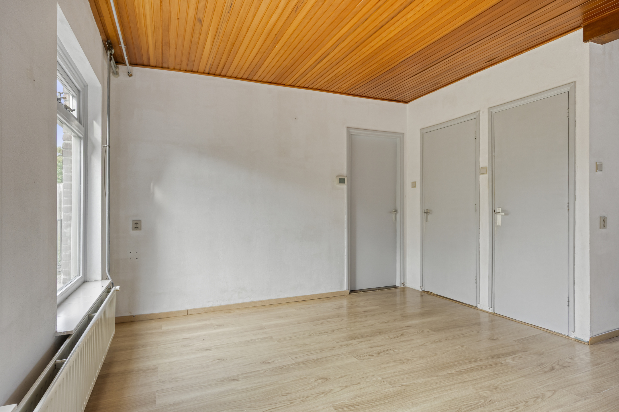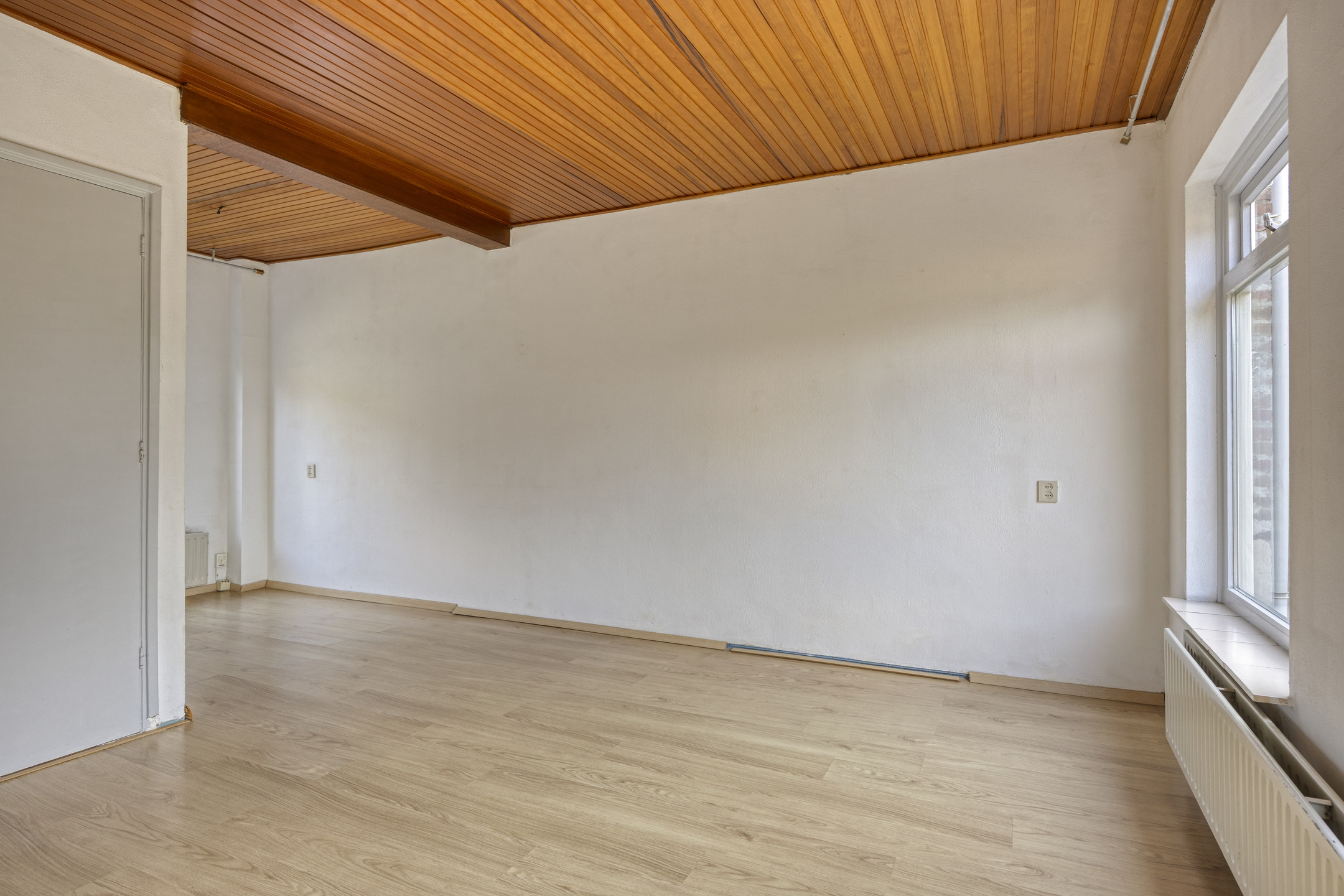 – de woonkamer biedt veel lichtinval dankzij de grote ramen en is voorzien van een laminaatvloer en houten plafondafwerking;