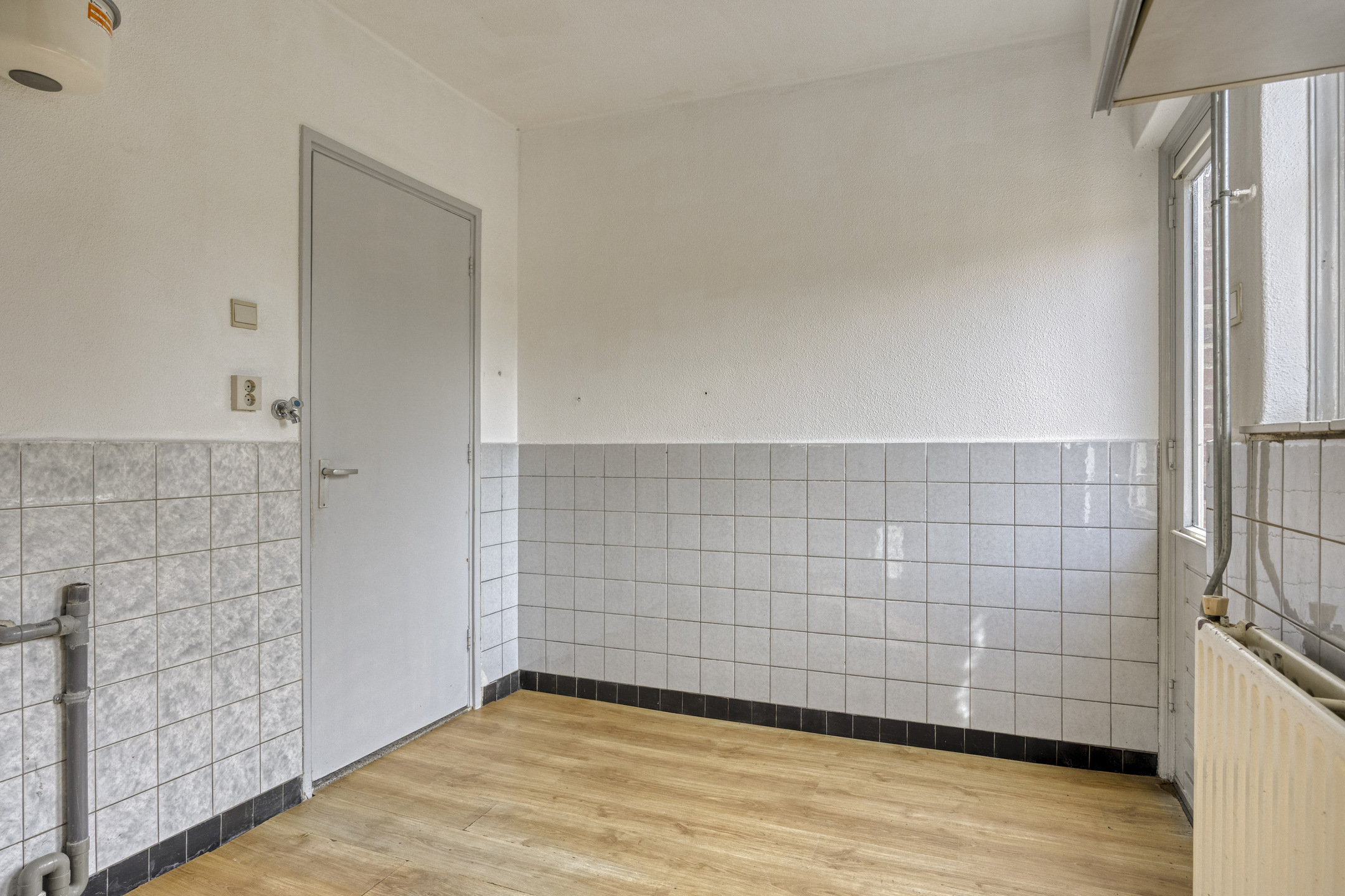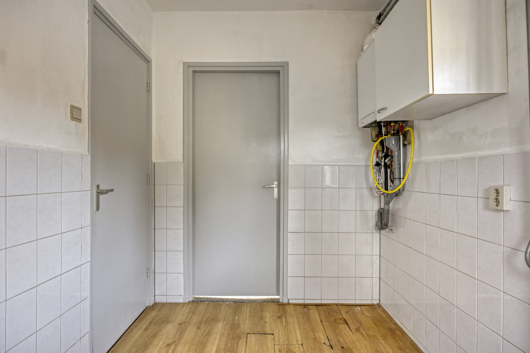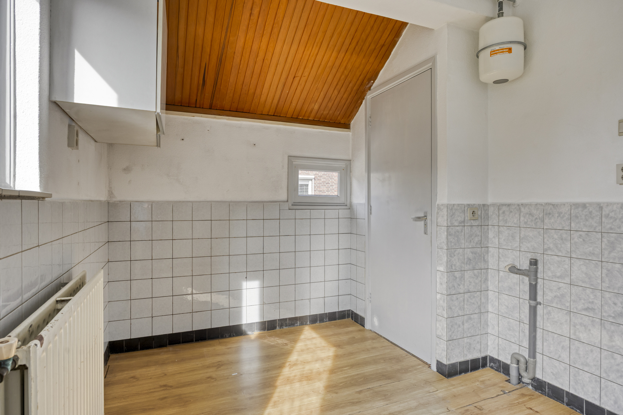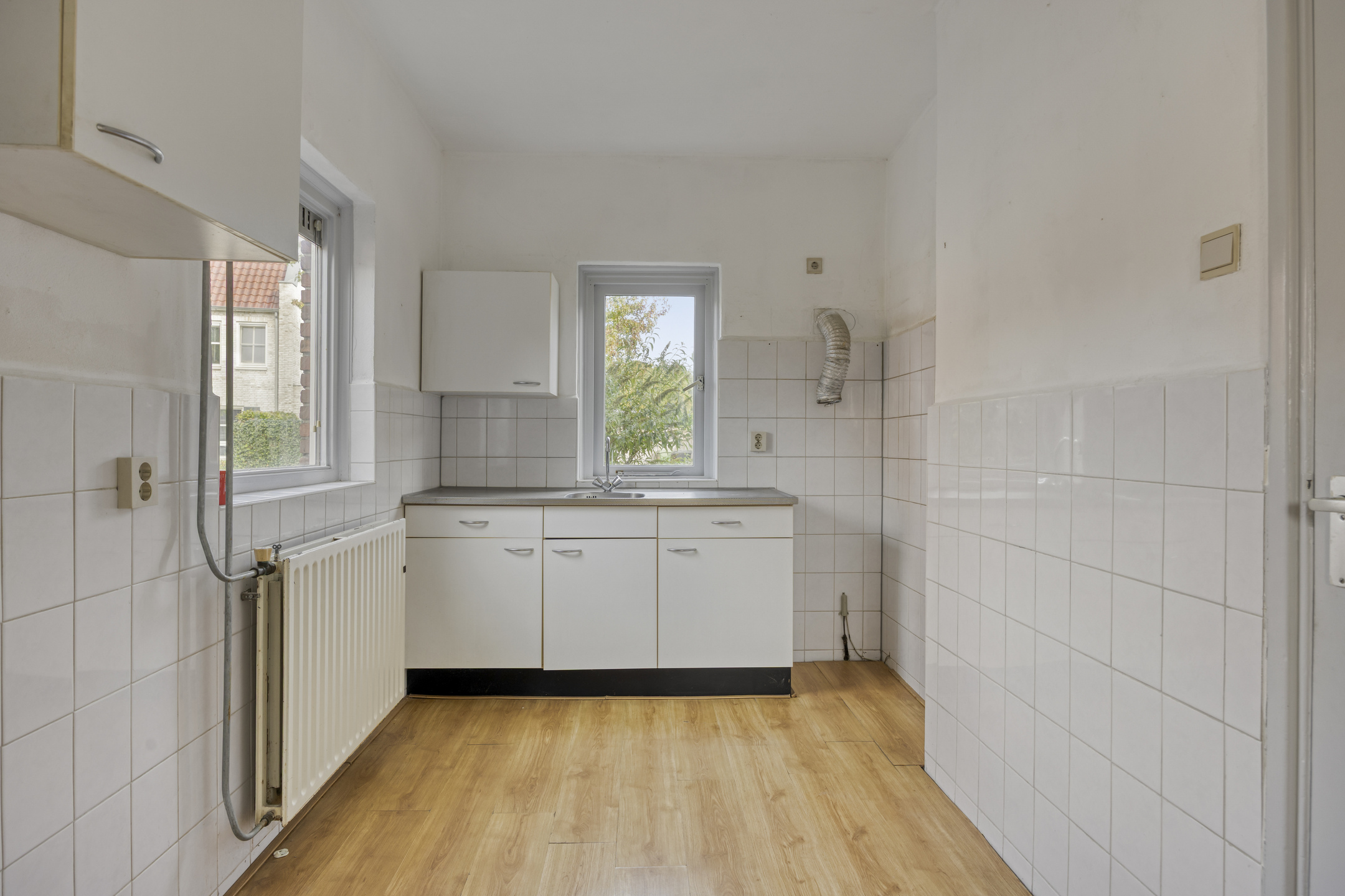 – de eenvoudige keuken is geplaatst in een rechte opstelling en biedt toegang tot de bijkeuken met aansluitingen voor witgoed en de CV ketel (2021);