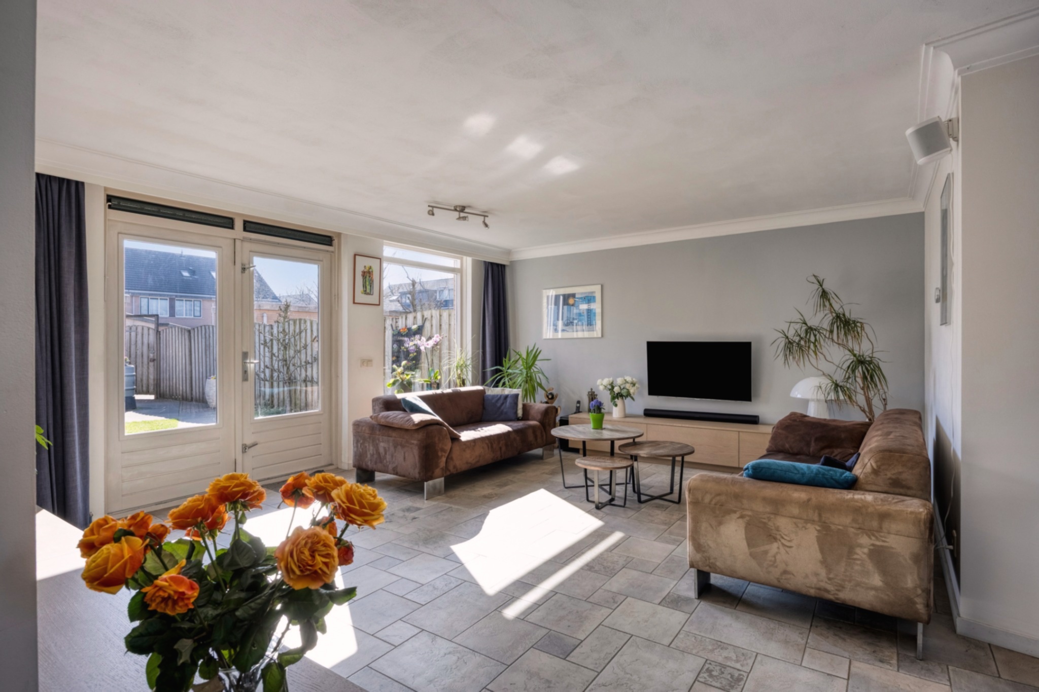 – de lichte en ruime woonkamer een fijne leefruimte vormt en beschikt over openslaande deuren naar de achtertuin;