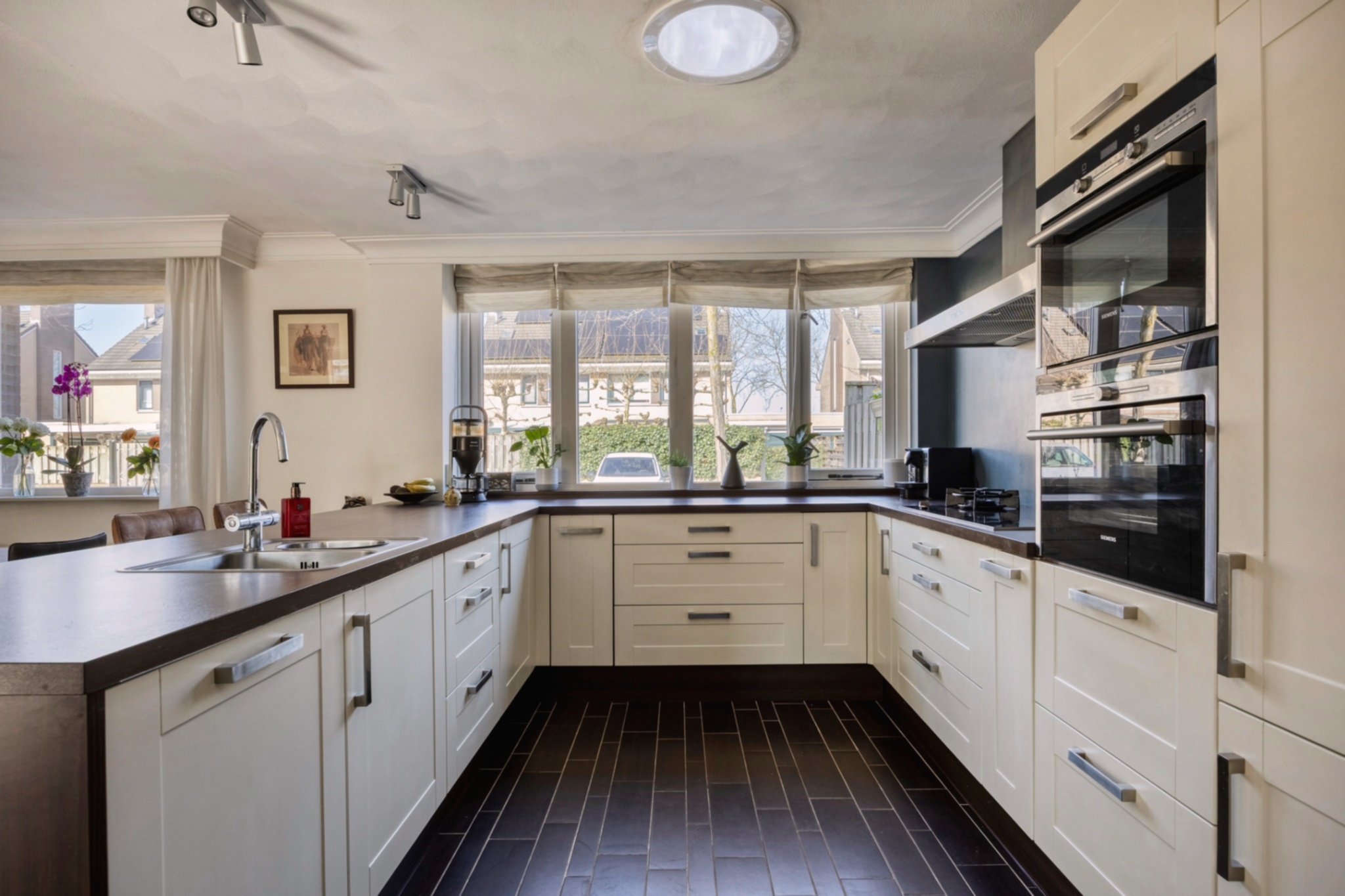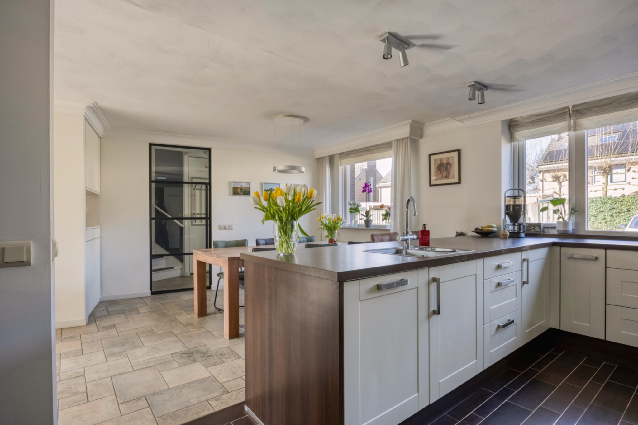 – de woning in 2010 aan de zijkant is uitgebouwd, waardoor een royale leefkeuken is ontstaan die perfect past bij het gezinsleven;