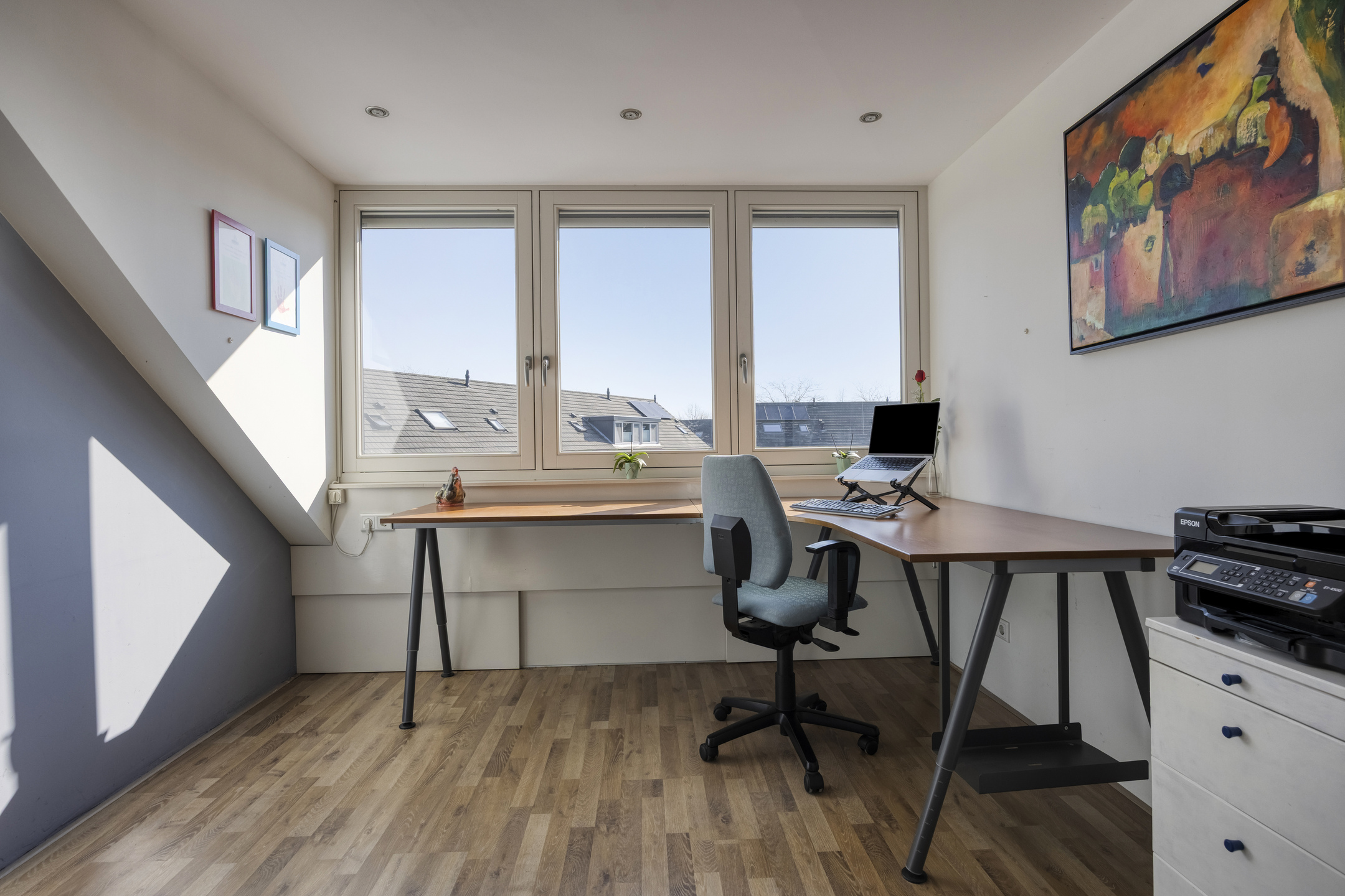 – via een vaste trap de royale tweede verdieping bereikbaar is, die momenteel ingedeeld is met een slaapkamer, werkkamer en waskamer;