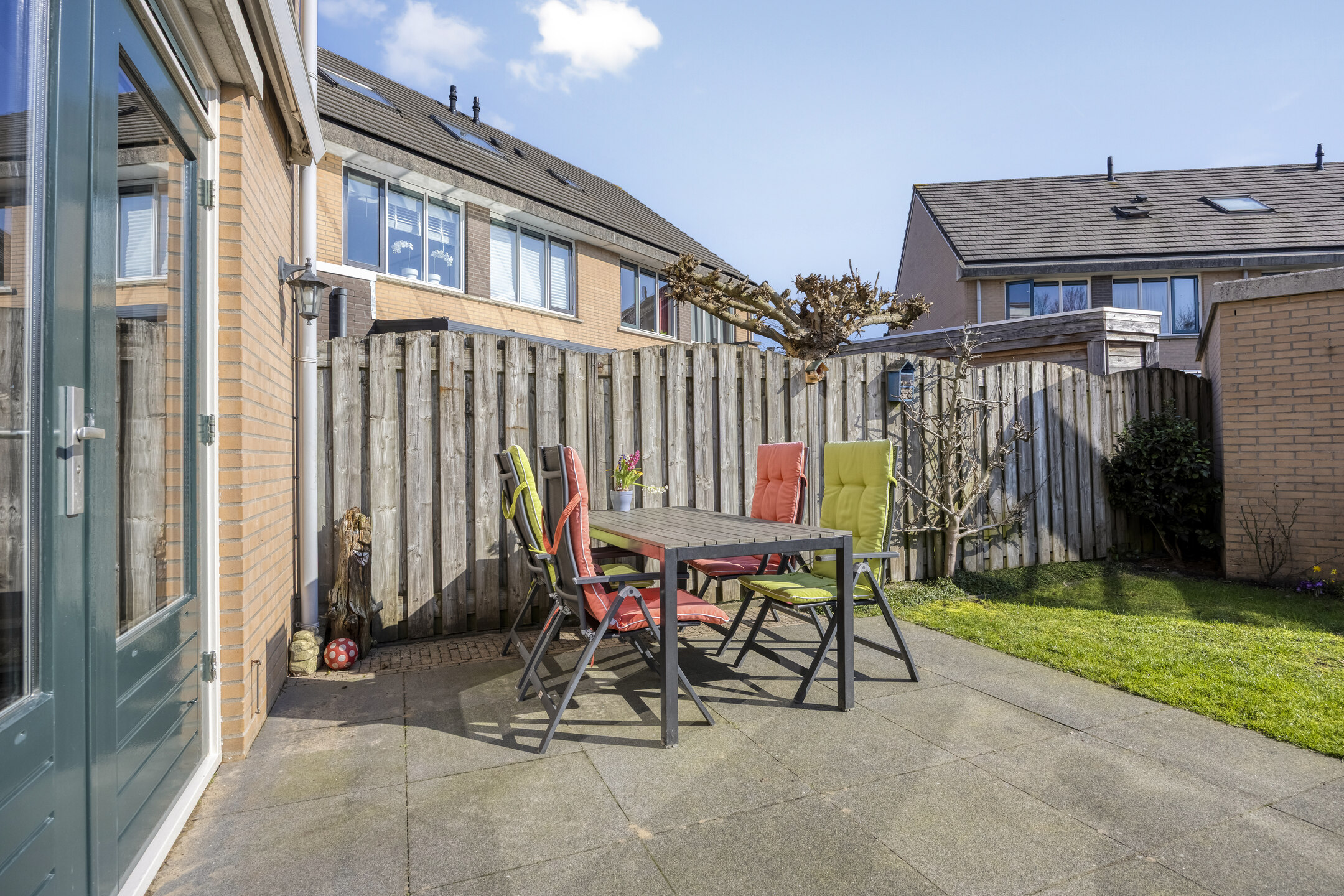 – de achtertuin op het zuidoosten ligt en een fijne combinatie heeft van terras en gazon, waardoor je hier al vroeg op de dag van de zon kunt genieten;