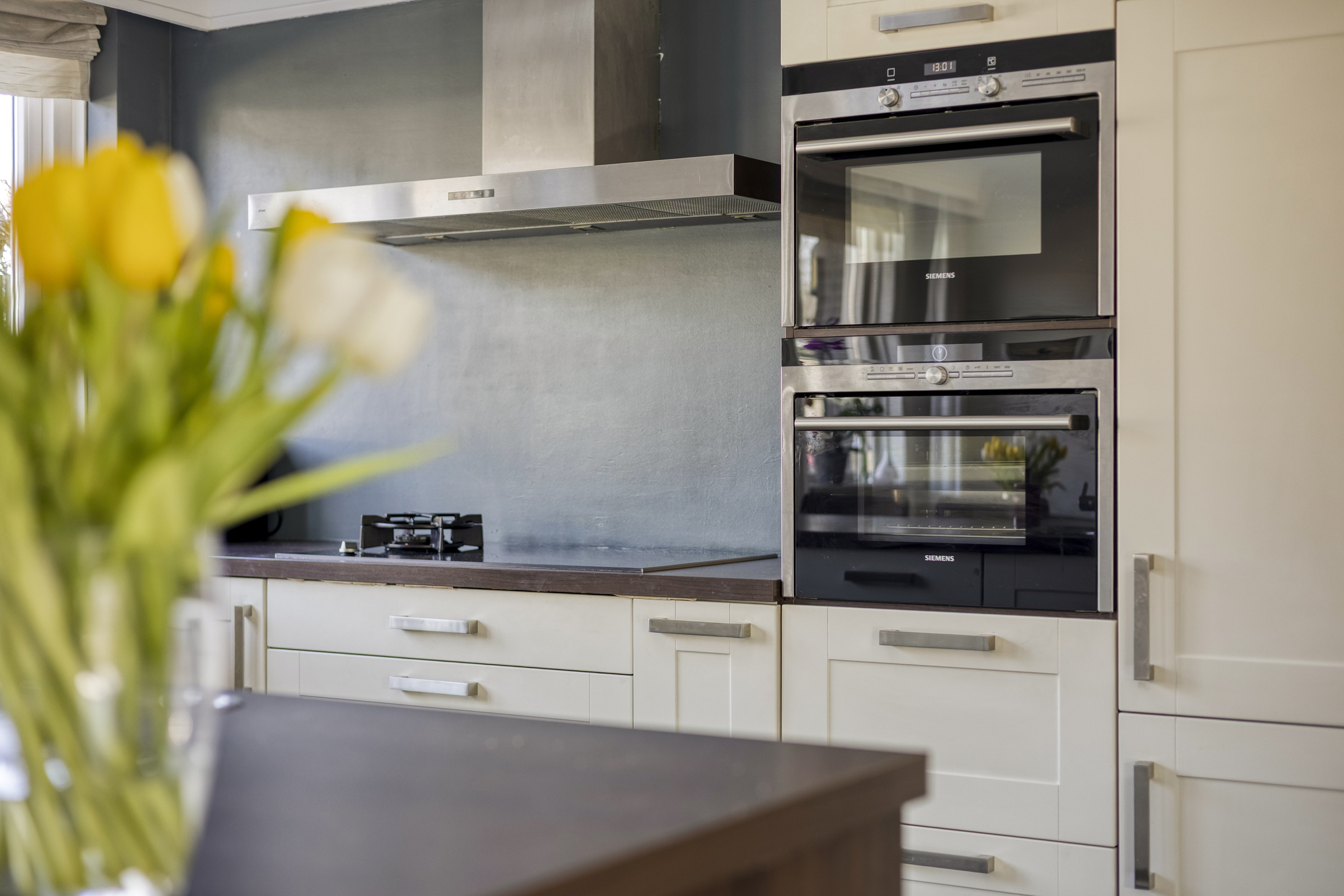 – de keuken is voorzien van diverse inbouwapparatuur, zoals een inductiekookplaat, afzuigkap, combi-oven, stoomoven, Quooker, koelkast en een aparte vriezer;